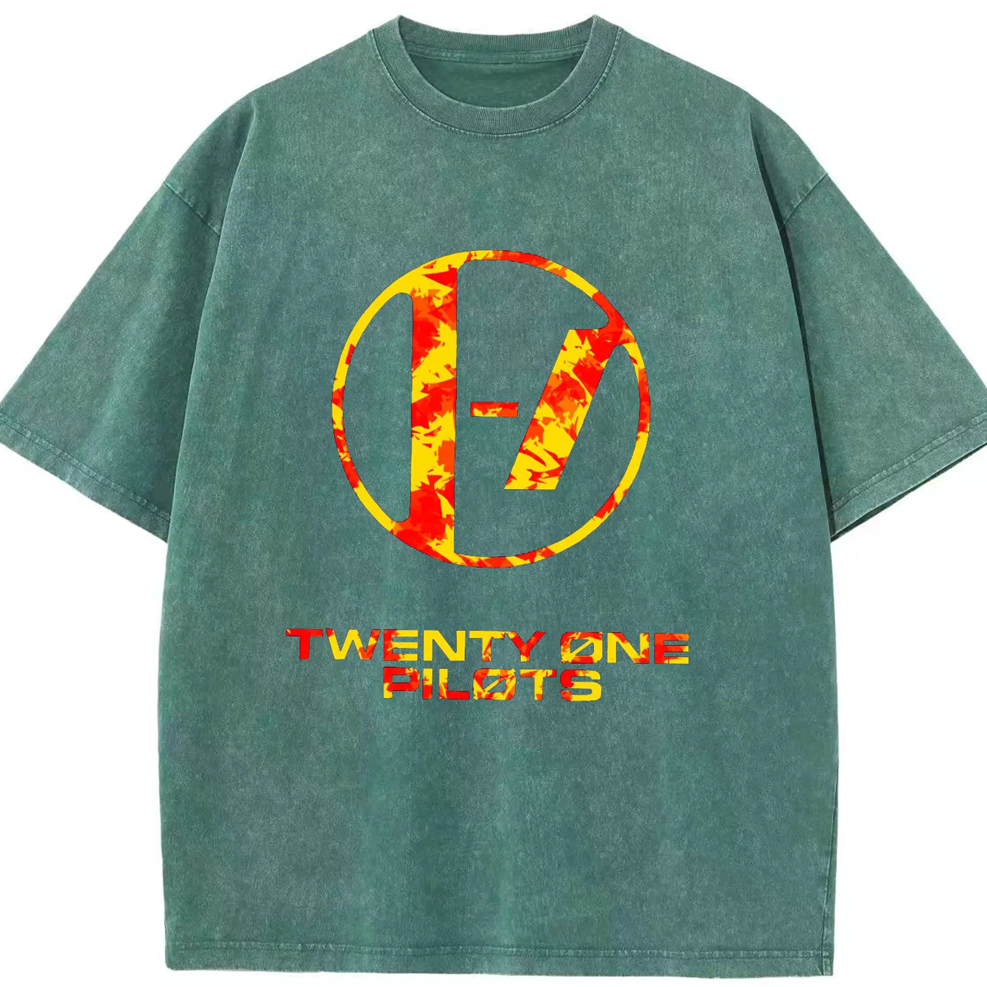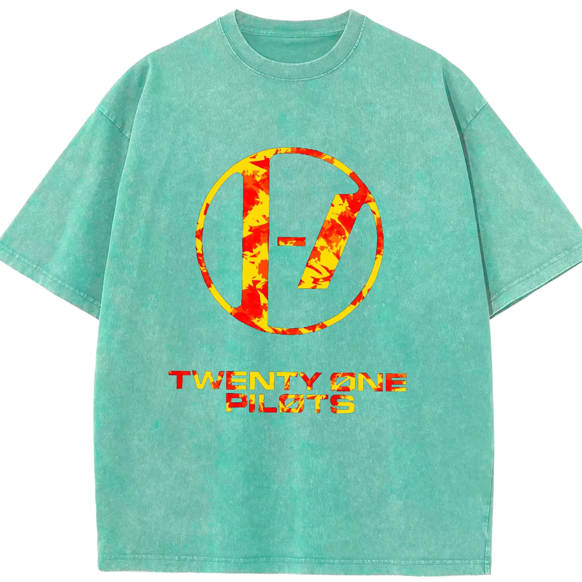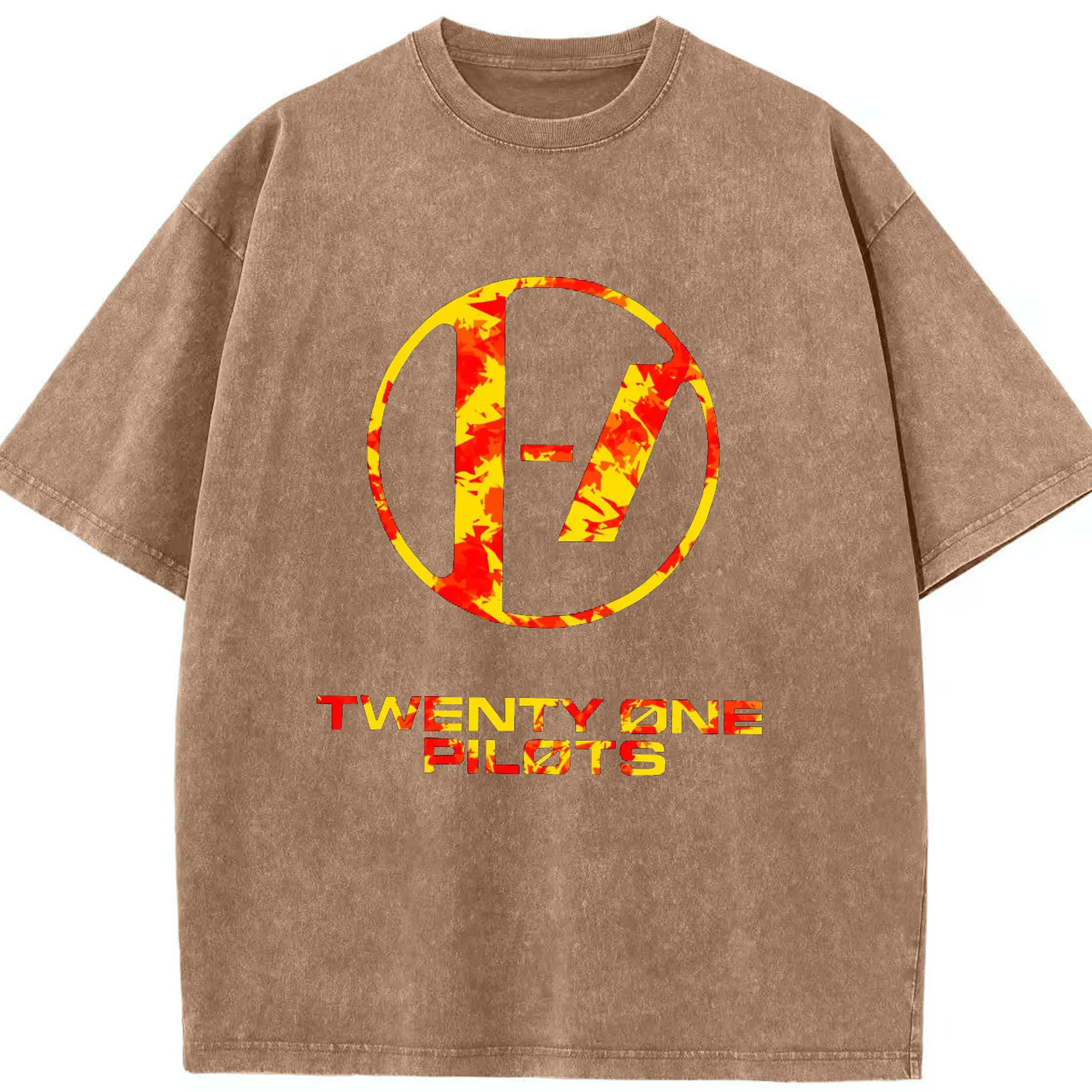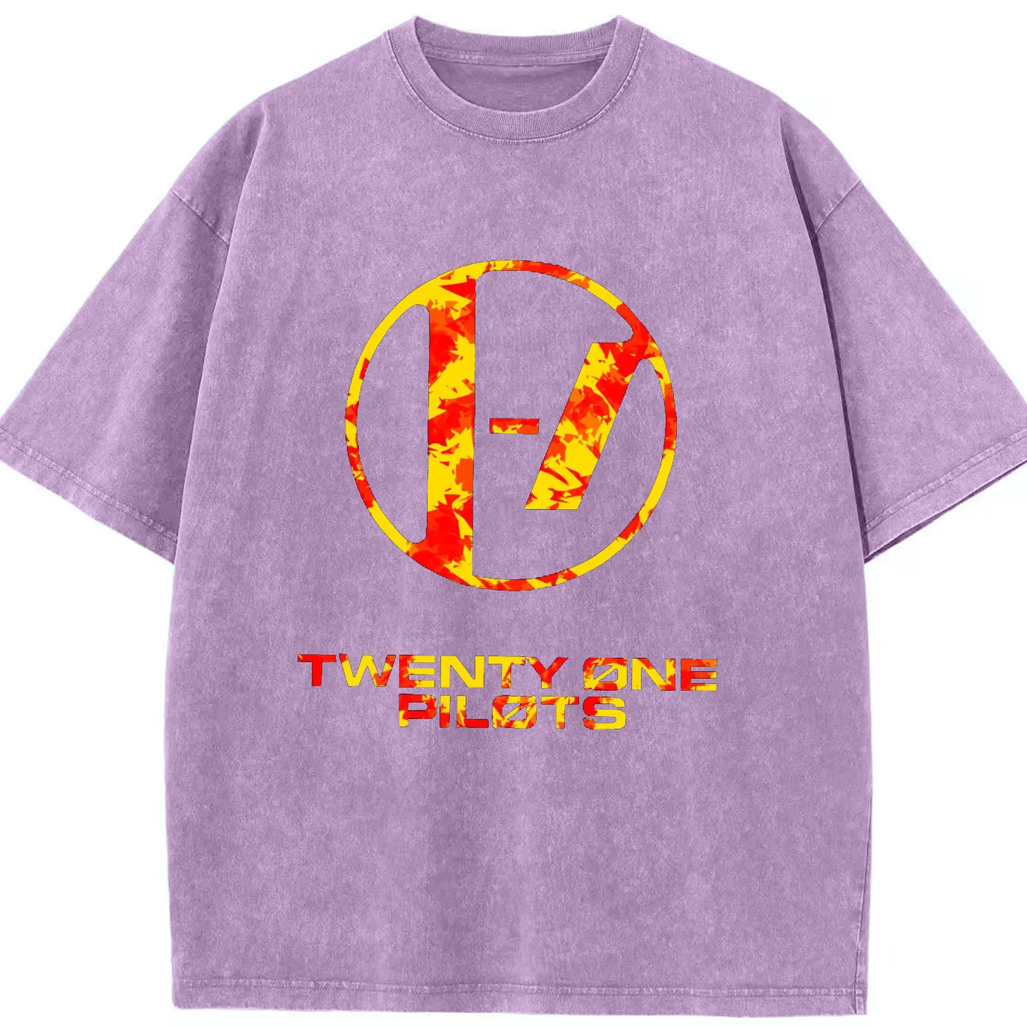 Twenty One Pilots Flame Texture Rock DIY - Washed Vintage Look 230g Cotton Oversized T-Shirt With Front Heat Transfer Print – Soft, Lightweight, Stylish Fit – Comfortable Casual Wear For Sports & Everyday Use