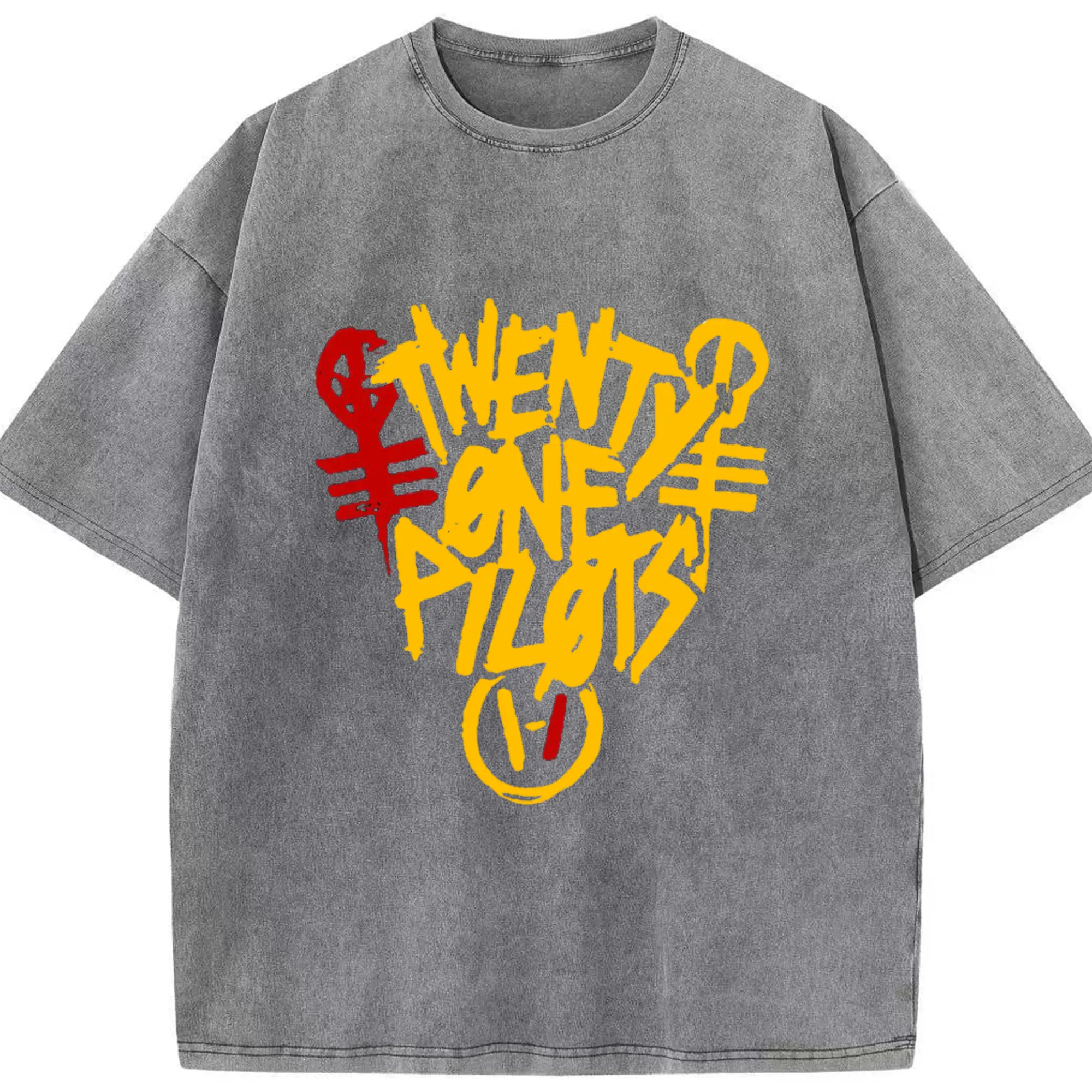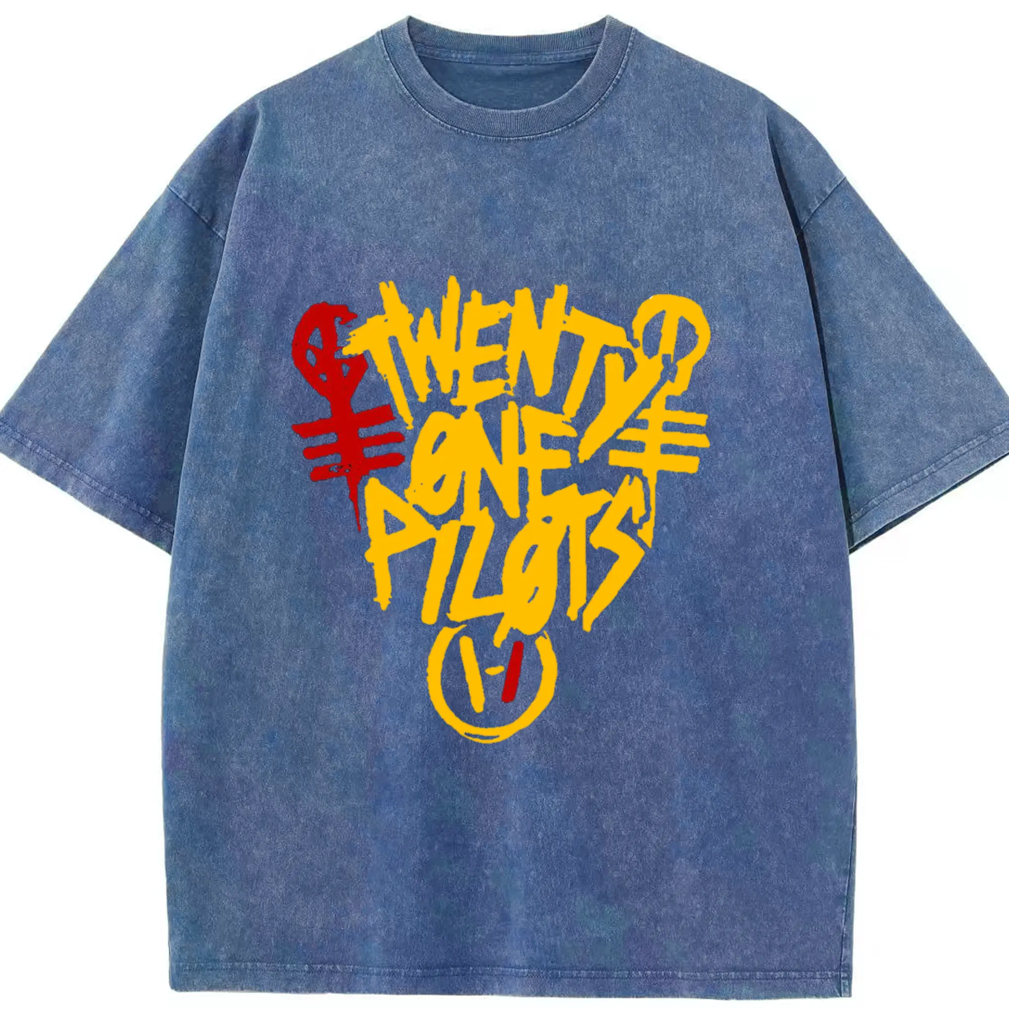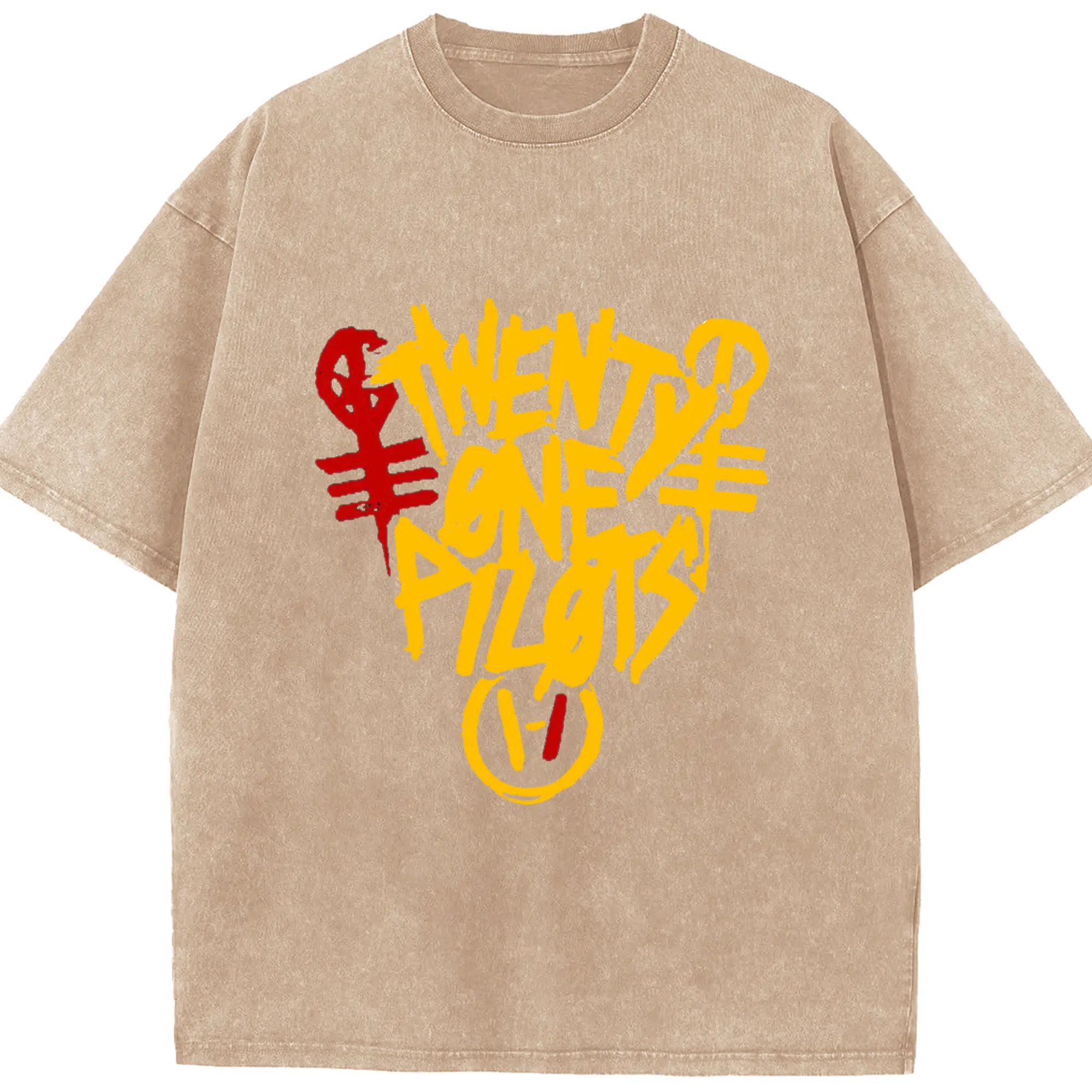 Twenty One Pilots Hand drawn doodle style Logo - Washed Vintage Look 230g Cotton Oversized T-Shirt With Front Heat Transfer Print – Soft, Lightweight, Stylish Fit – Comfortable Casual Wear For Sports & Everyday Use