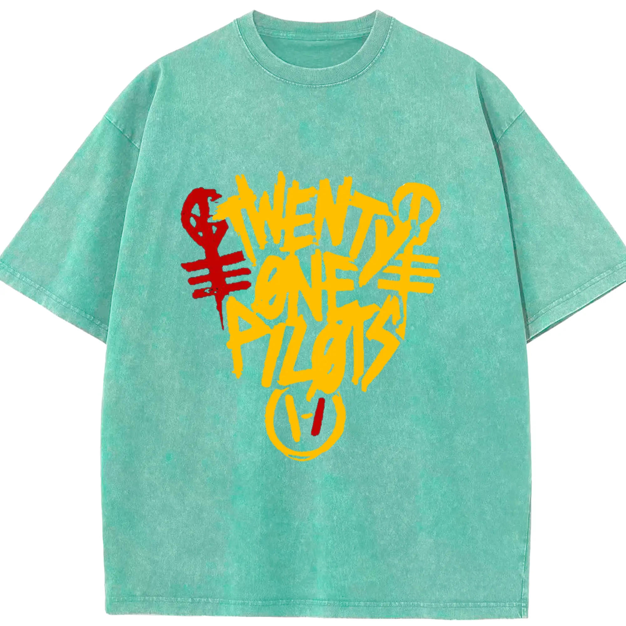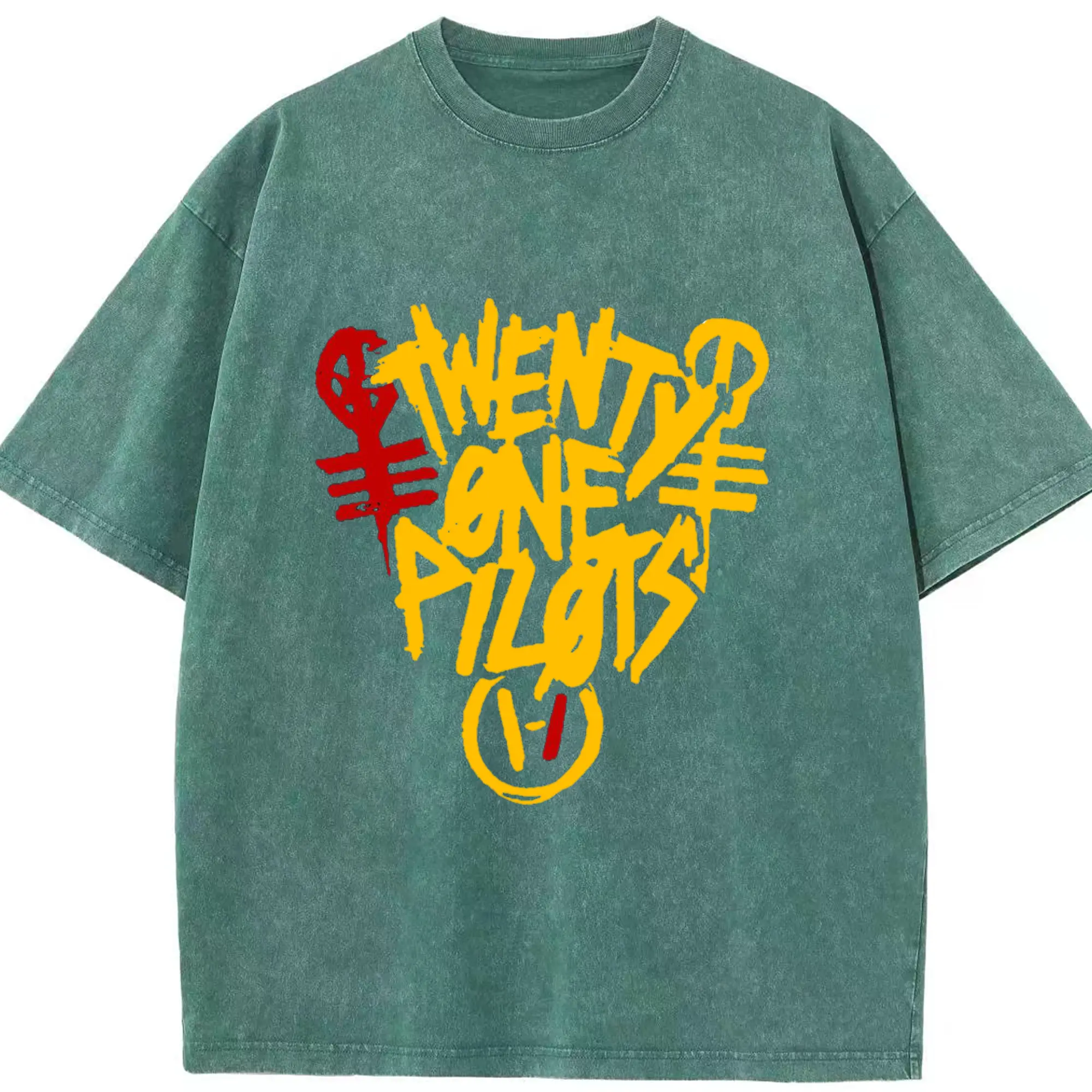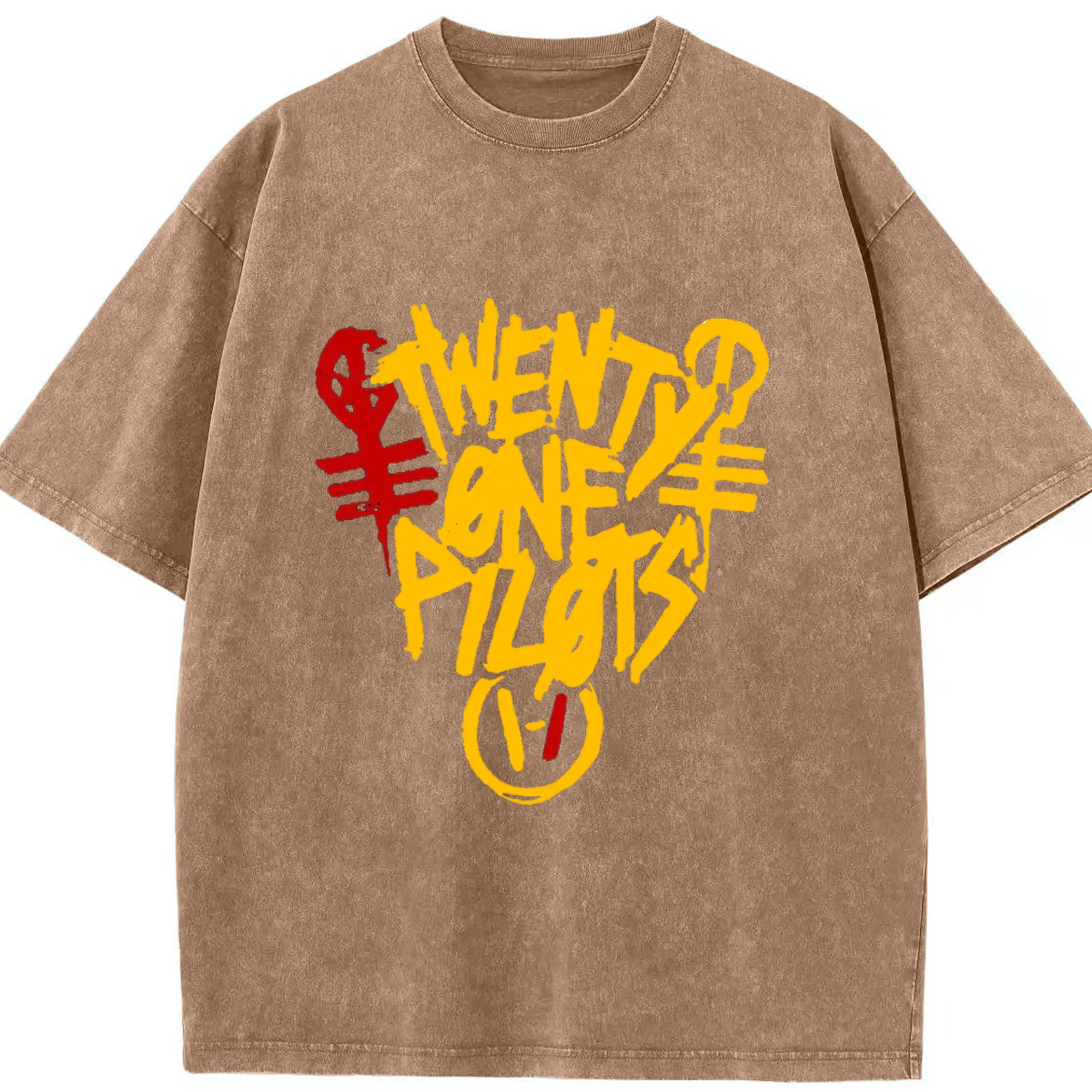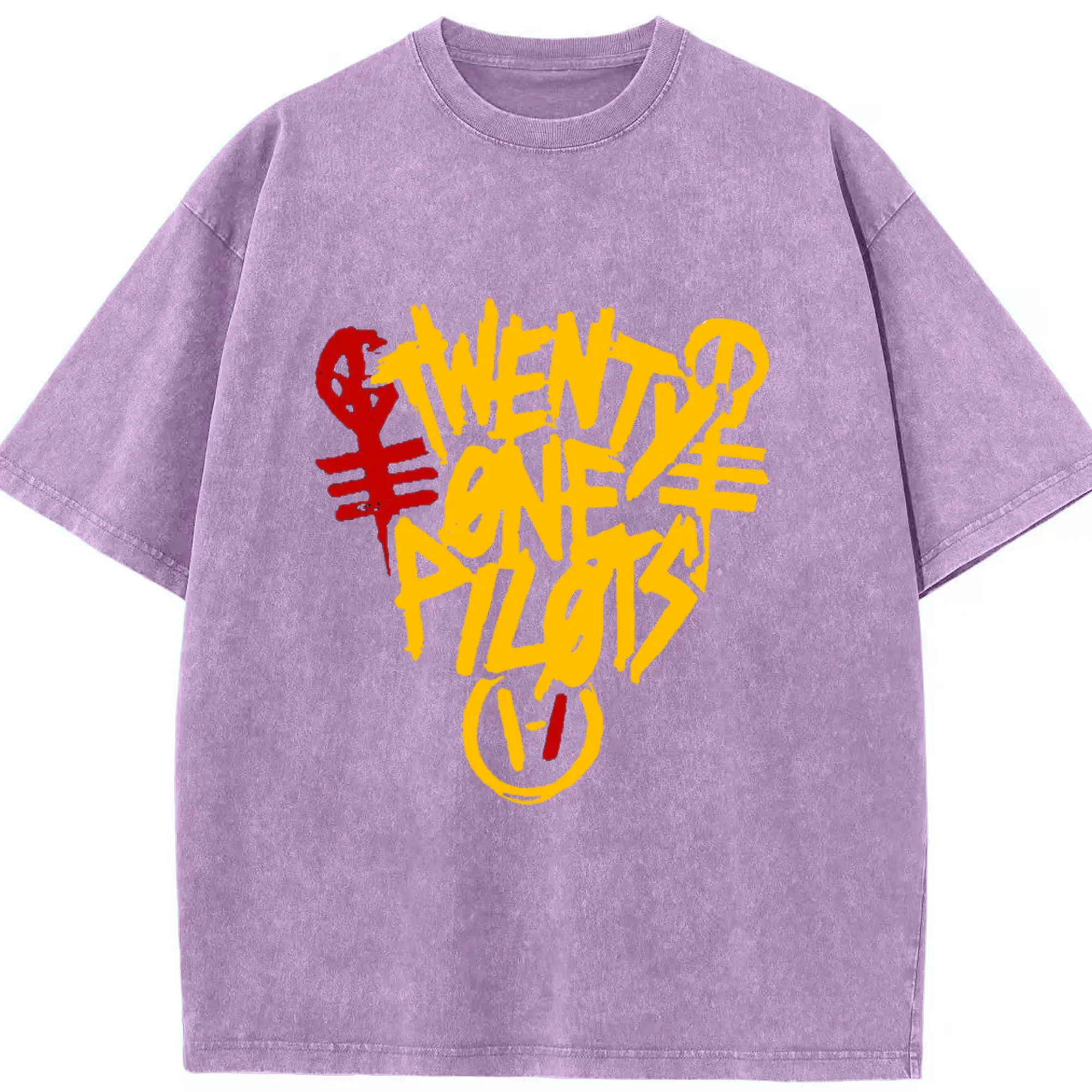Twenty One Pilots Hand drawn doodle style Logo - Washed Vintage Look 230g Cotton Oversized T-Shirt With Front Heat Transfer Print – Soft, Lightweight, Stylish Fit – Comfortable Casual Wear For Sports & Everyday Use