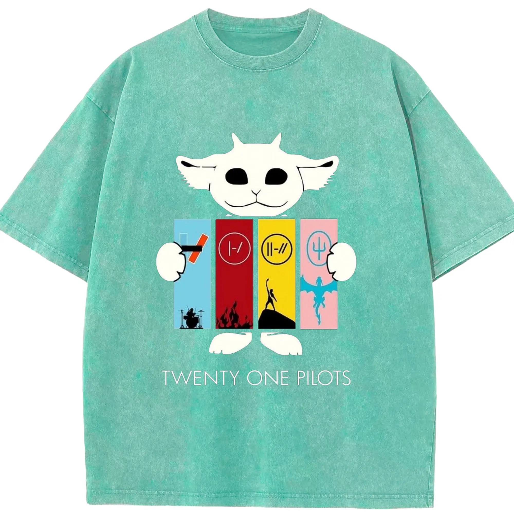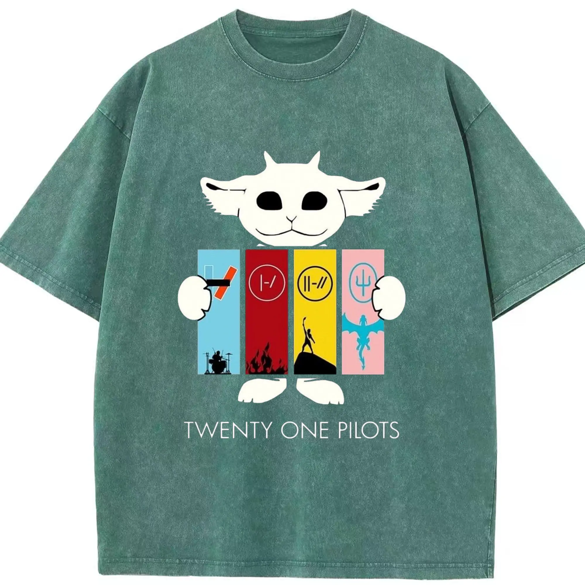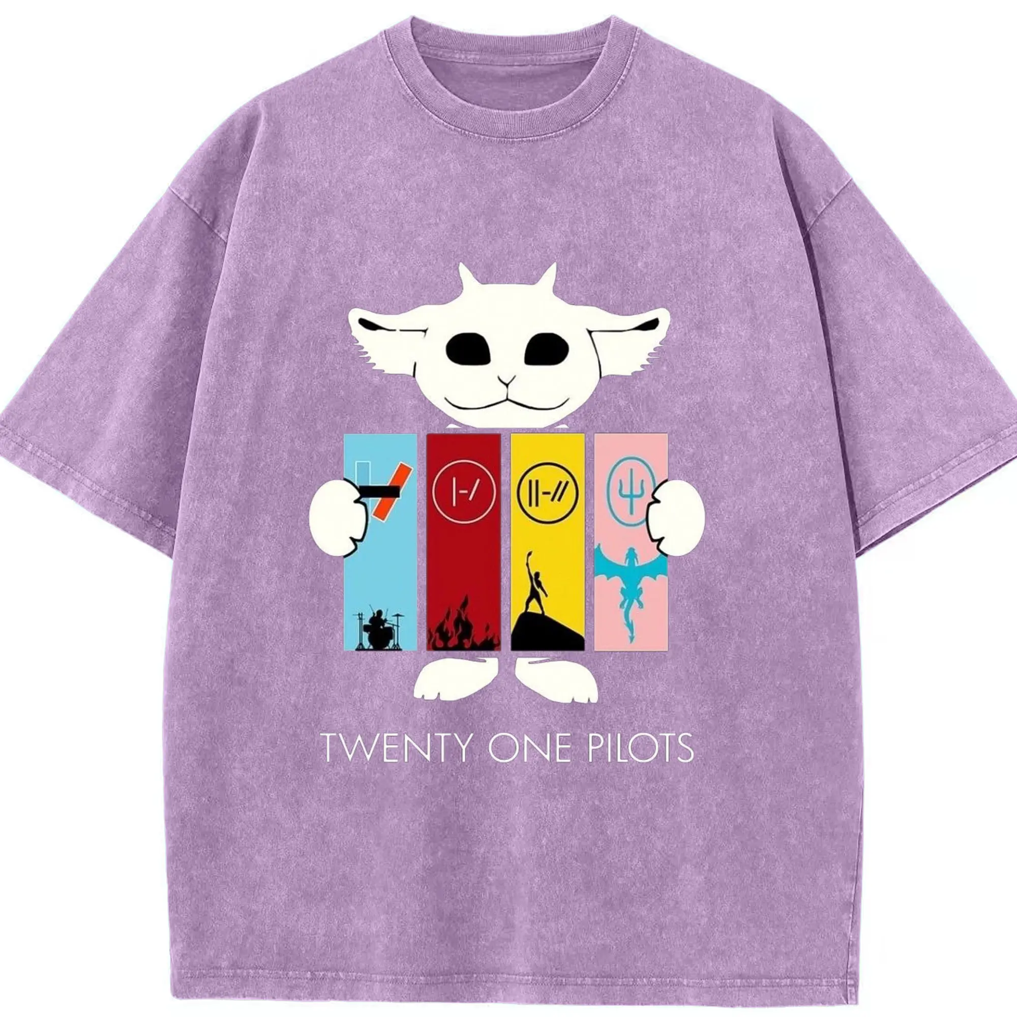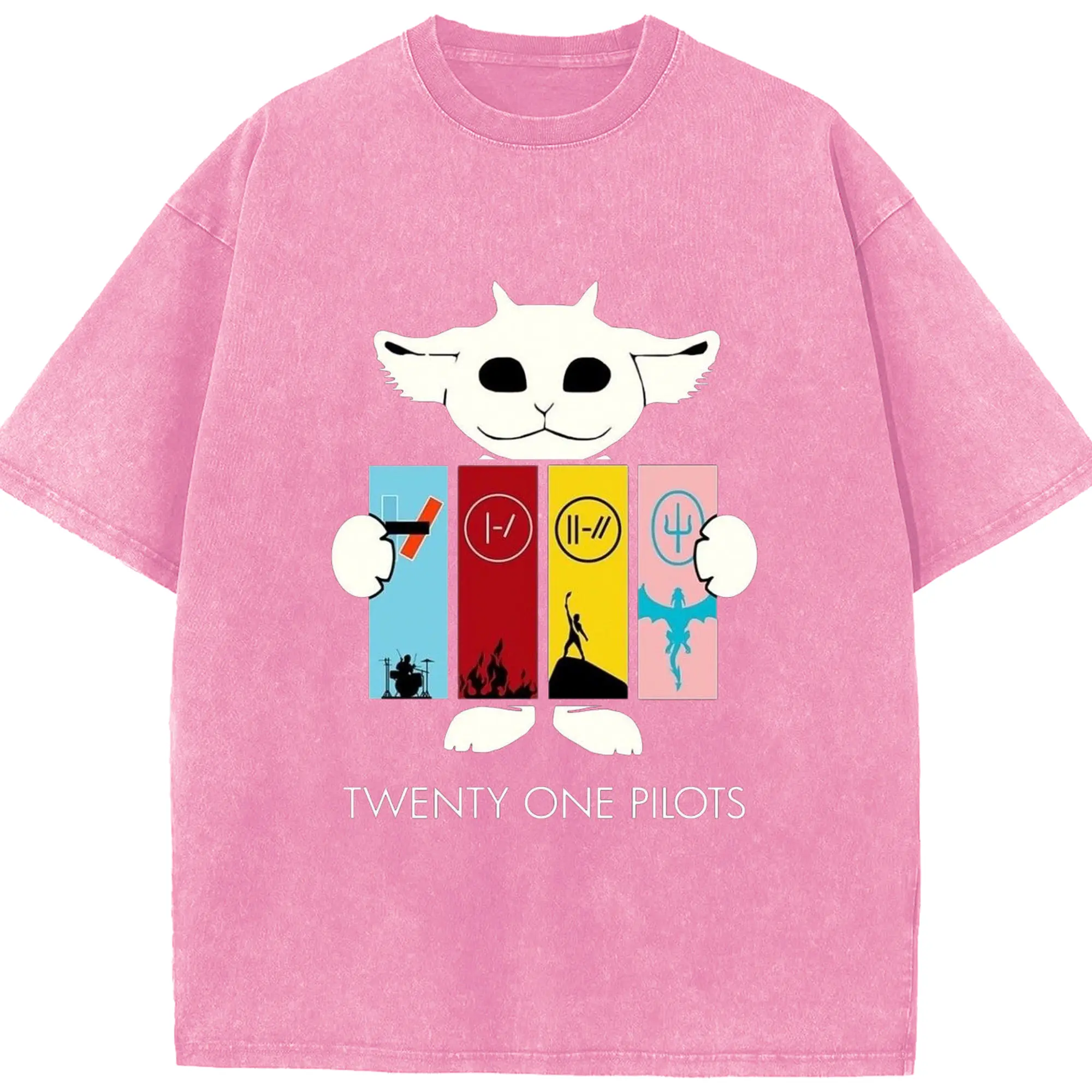 Twenty One Pilots Monster Cartoon Rock DIY - Washed Vintage Look 230g Cotton Oversized T-Shirt With Front Heat Transfer Print – Soft, Lightweight, Stylish Fit – Comfortable Casual Wear For Sports & Everyday Use