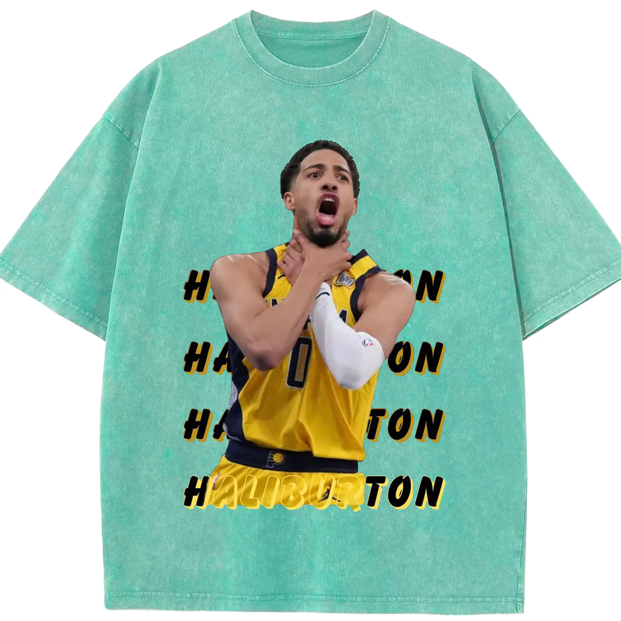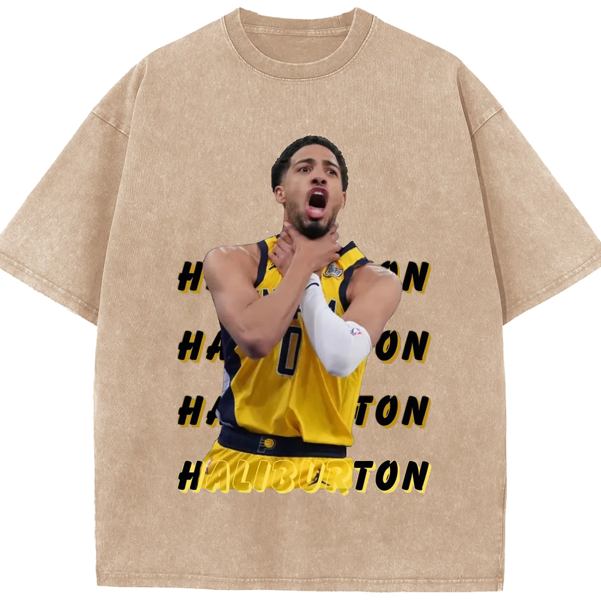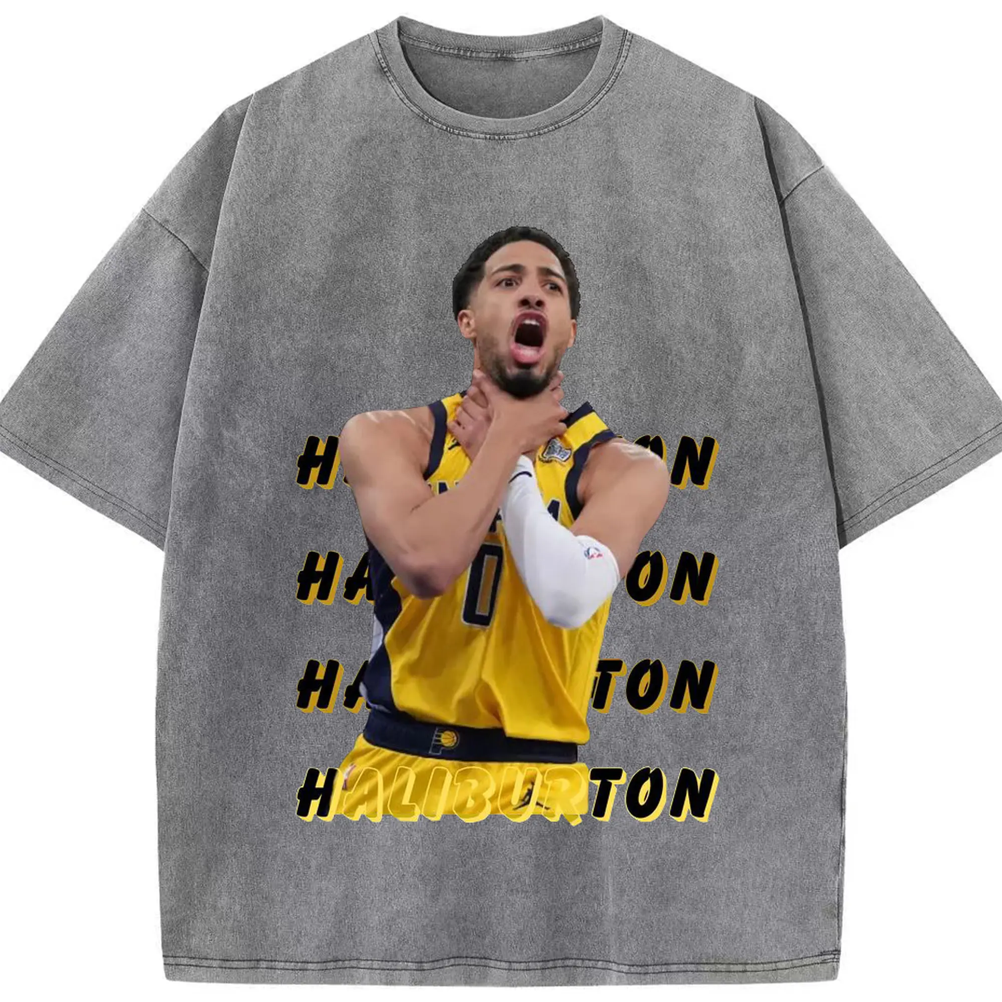 Tyrese Haliburton's neck-choking celebration - Washed Vintage Look 230g Cotton Oversized T-Shirt With Front Heat Transfer Print – Soft, Lightweight, Stylish Fit – Comfortable Casual Wear For Sports & Everyday Use