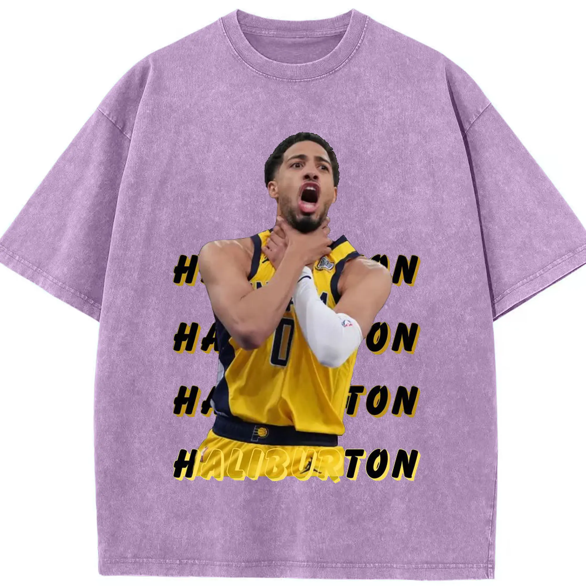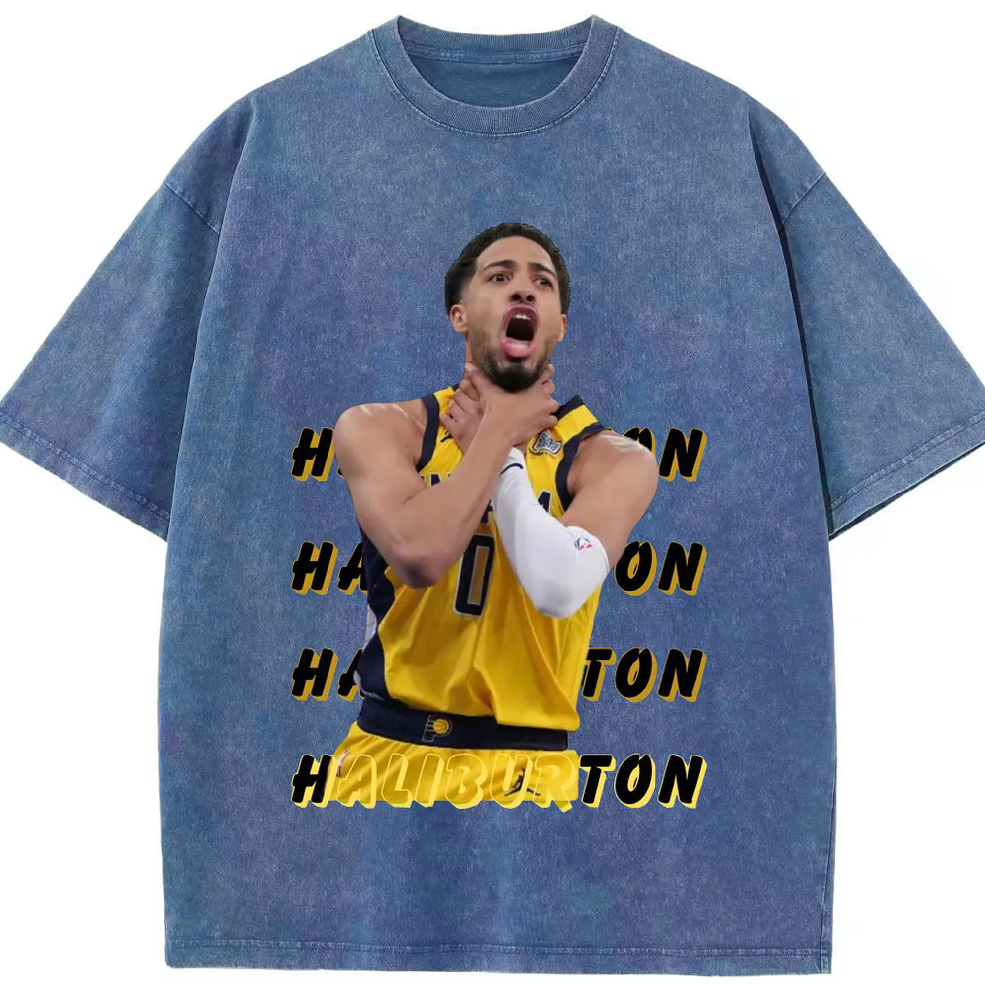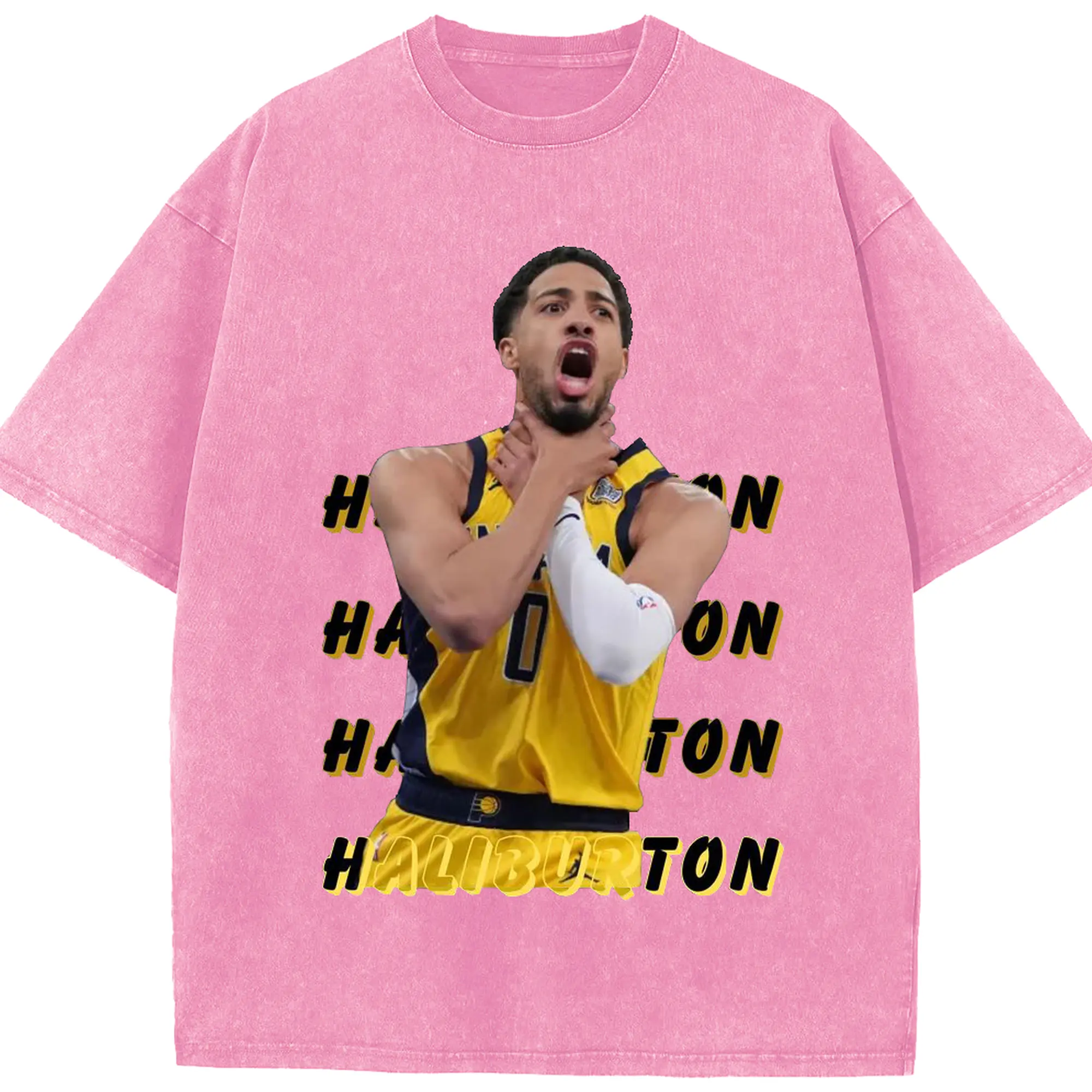 Tyrese Haliburton's neck-choking celebration - Washed Vintage Look 230g Cotton Oversized T-Shirt With Front Heat Transfer Print – Soft, Lightweight, Stylish Fit – Comfortable Casual Wear For Sports & Everyday Use