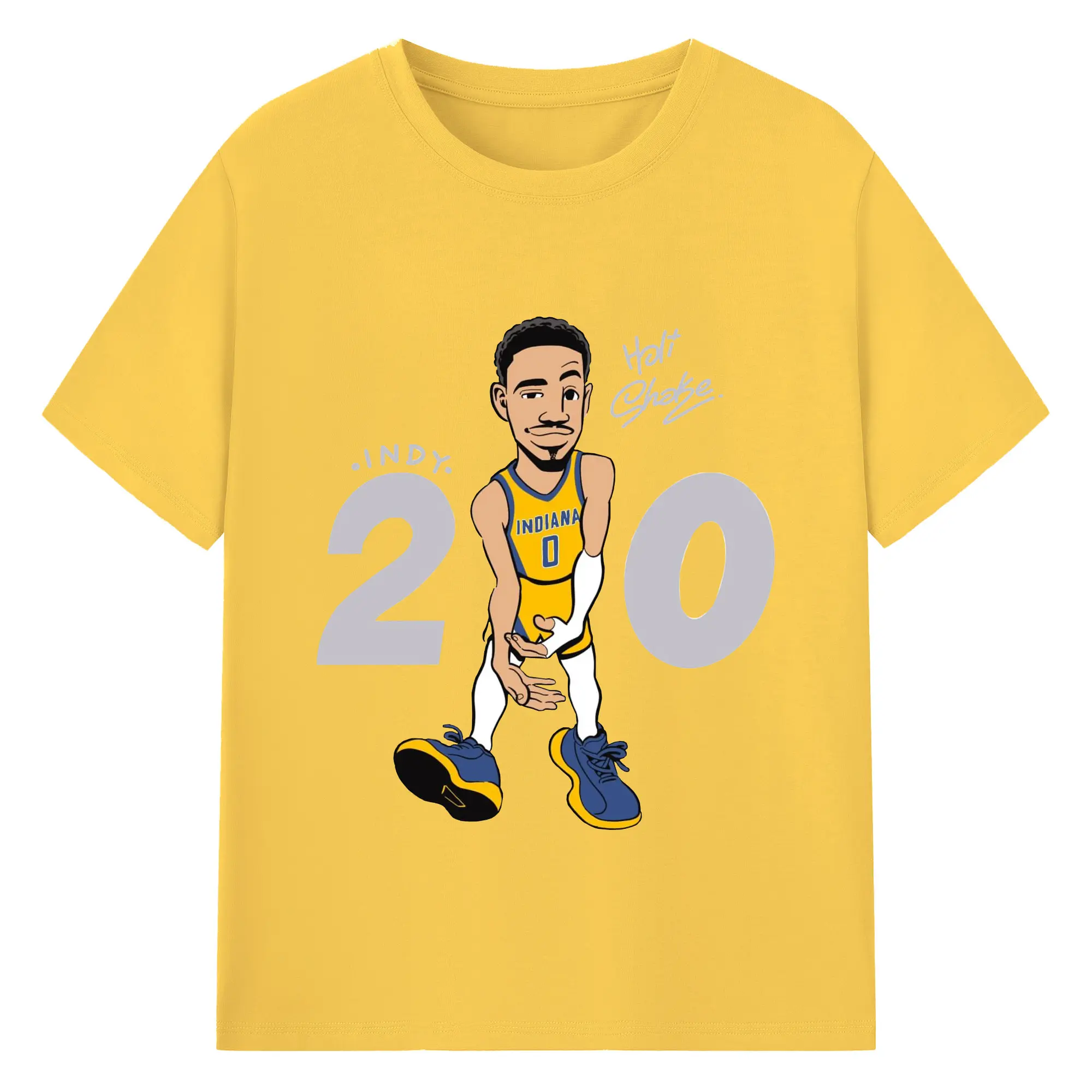 Tyrese Halliburton cartoon character - 180g Cotton T-Shirt With Front Heat Transfer Print – Soft, Lightweight, Fitted Design – Comfortable Casual Wear For Sports & Everyday Use