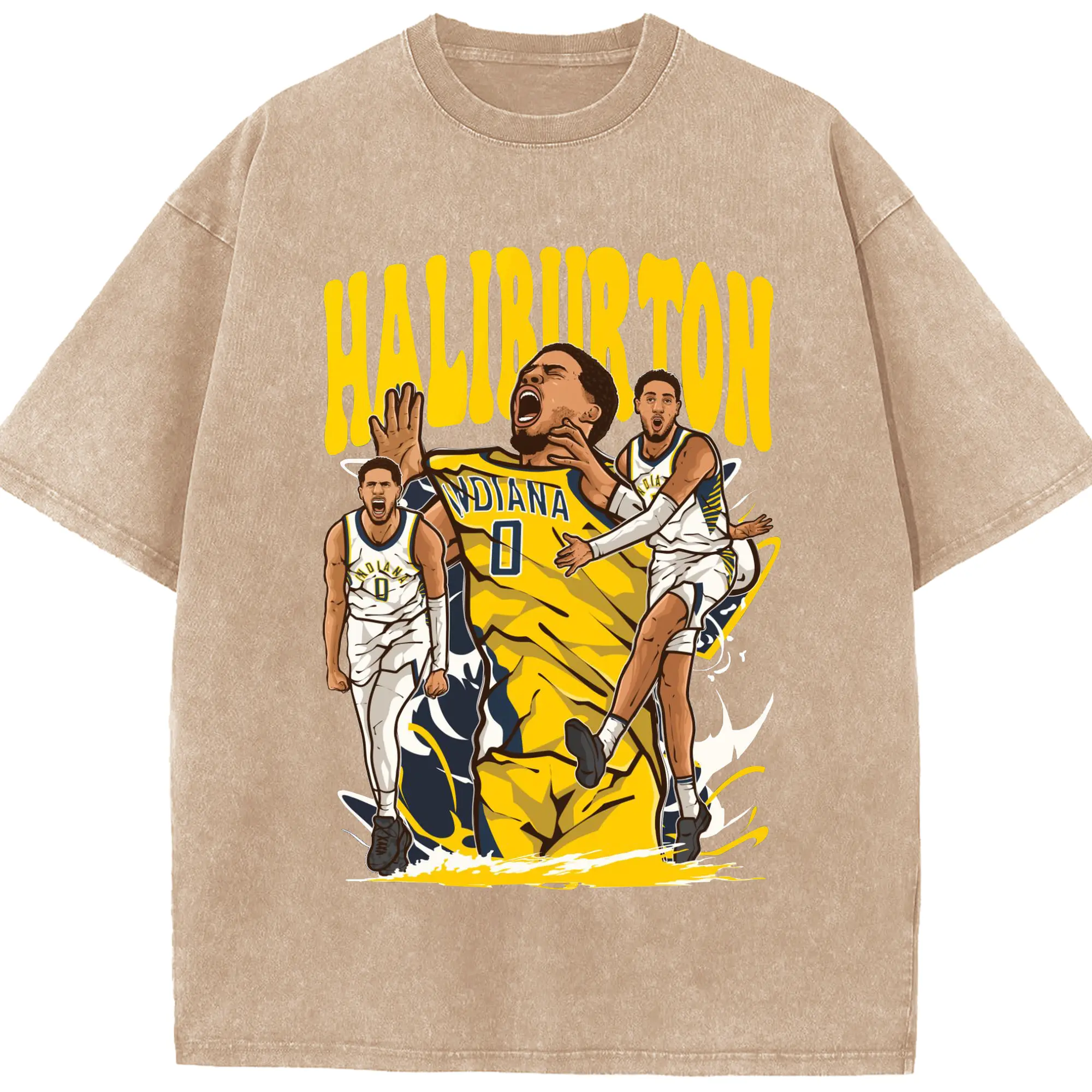 Tyrese Halliburton comic book style - Washed Vintage Look 230g Cotton Oversized T-Shirt With Front Heat Transfer Print – Soft, Lightweight, Stylish Fit – Comfortable Casual Wear For Sports & Everyday Use