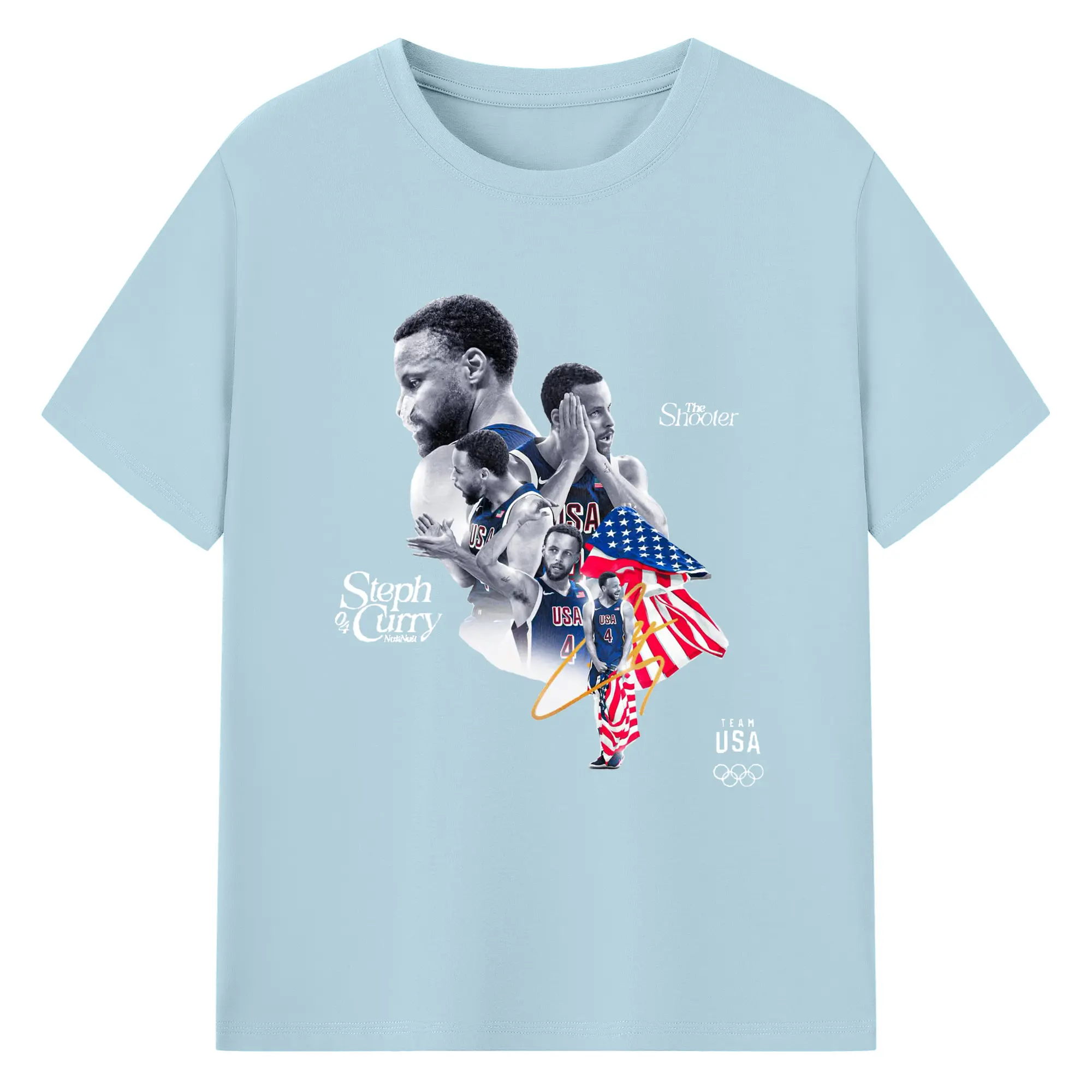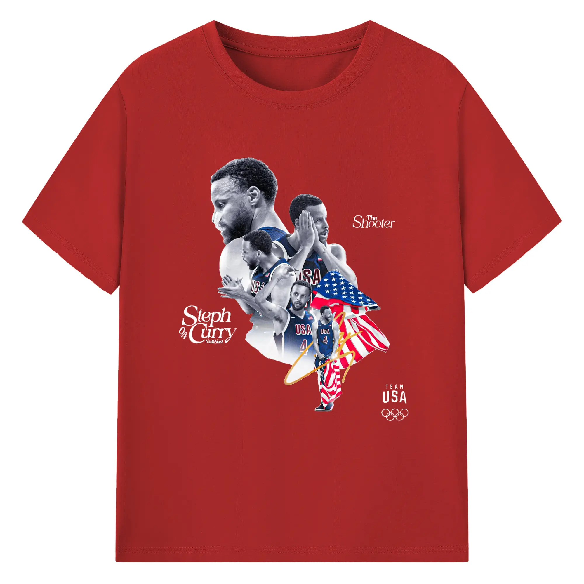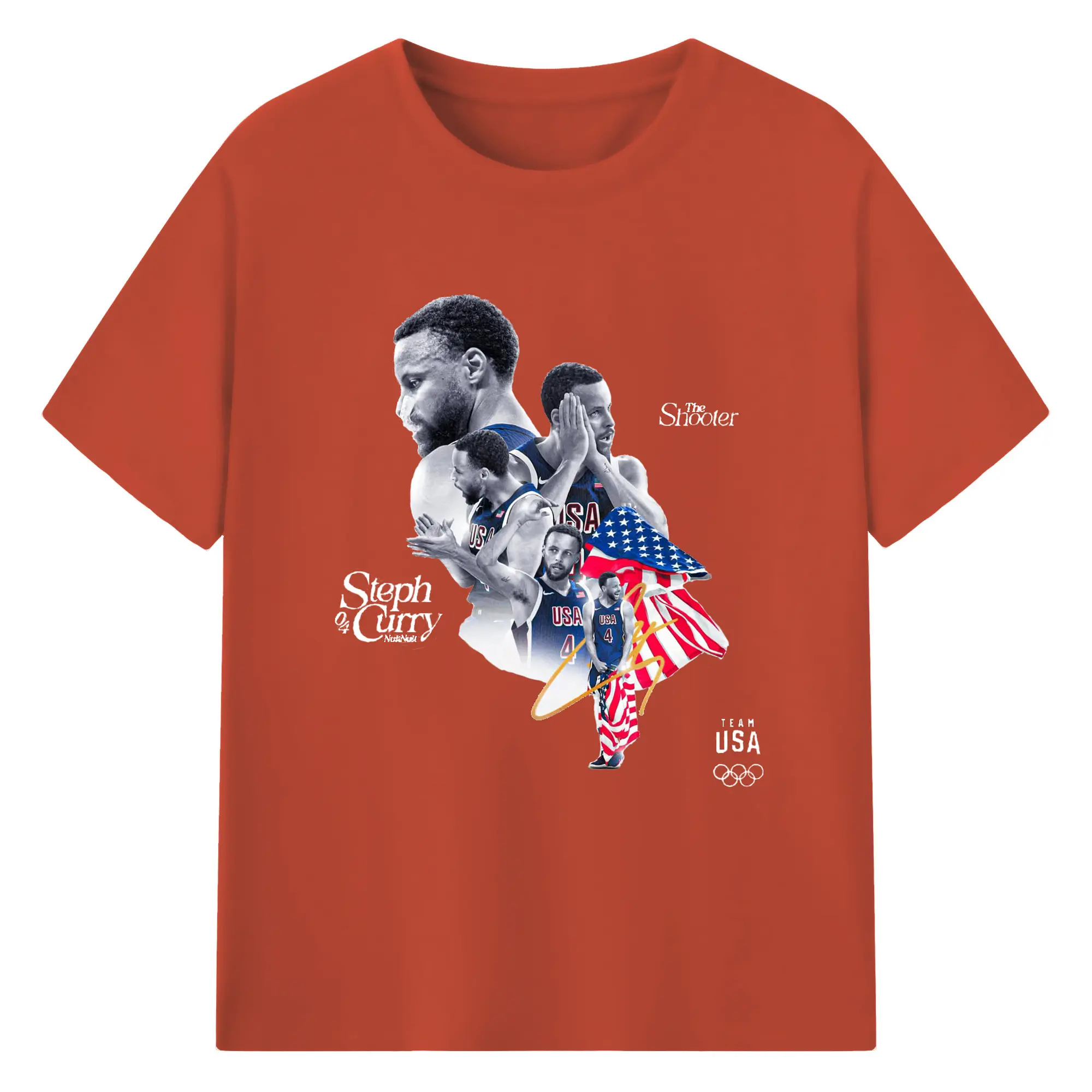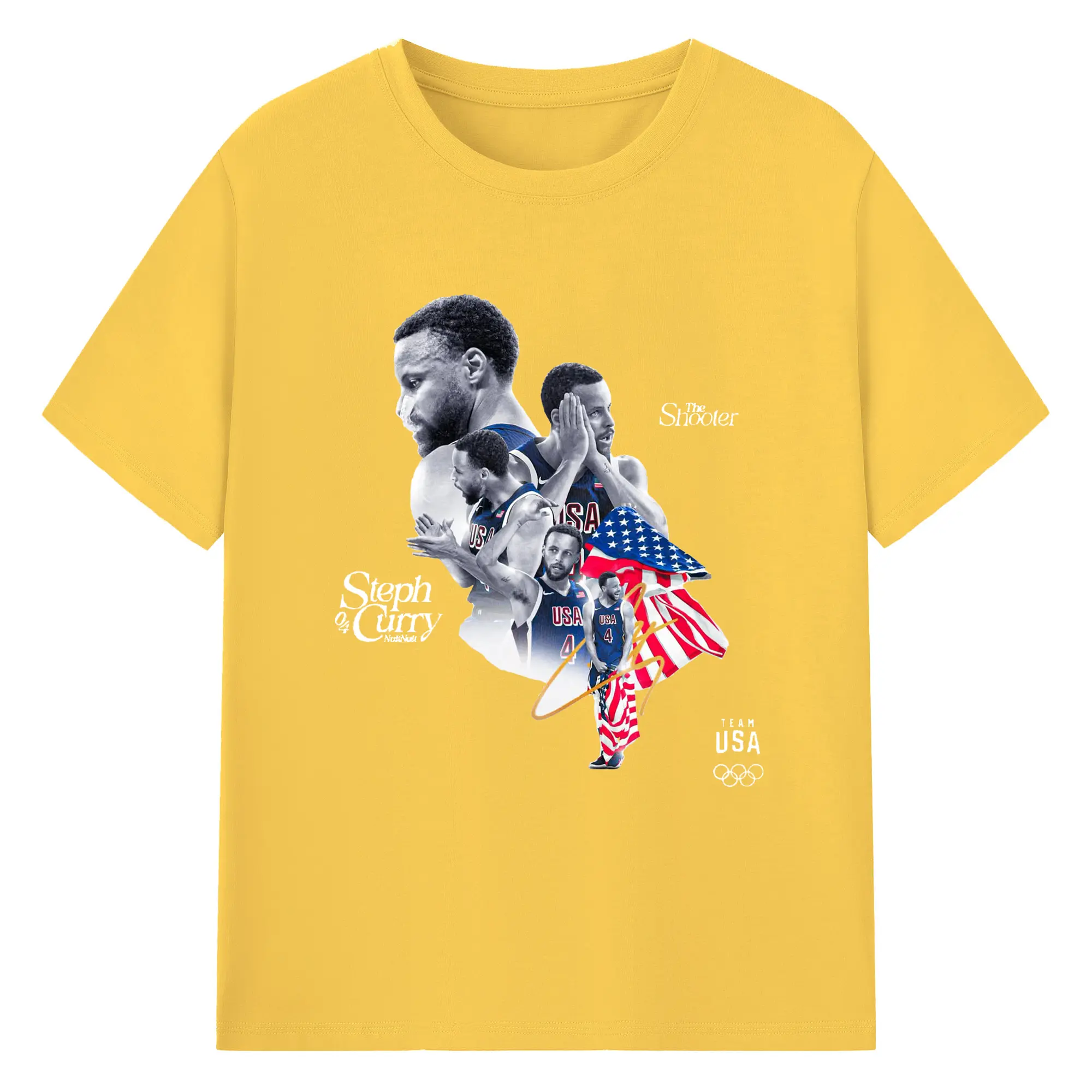 USA Basketball Curry #4 Shirt - 180g Cotton T-Shirt With Front Heat Transfer Print – Soft, Lightweight, Fitted Design – Comfortable Casual Wear For Sports & Everyday Use