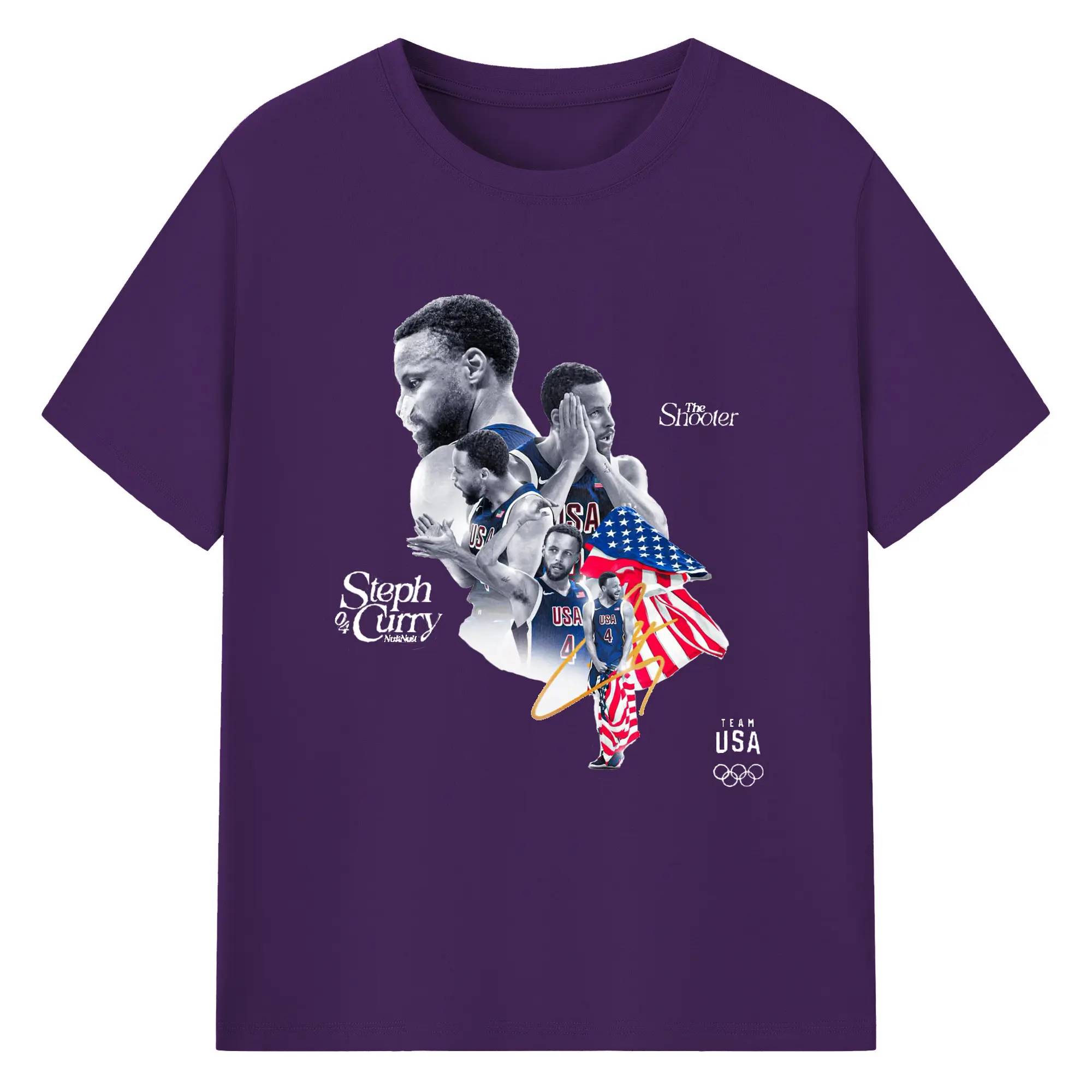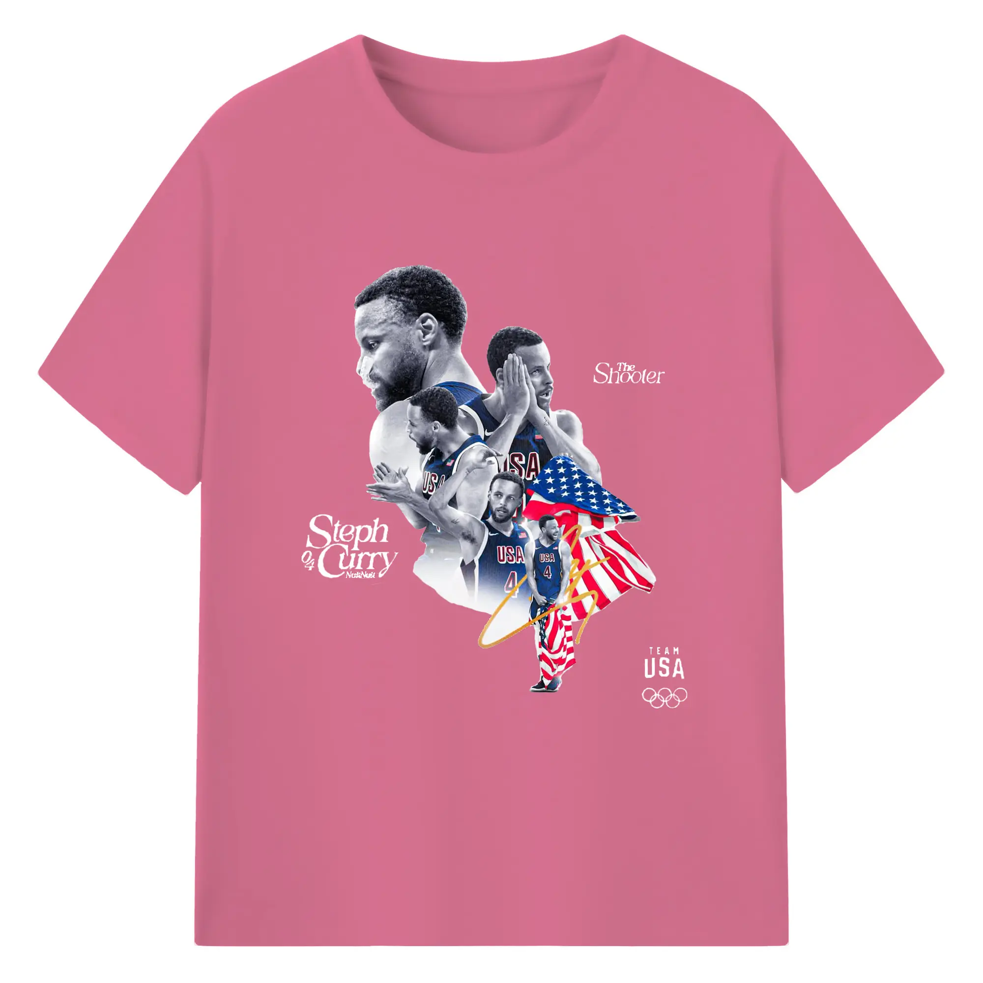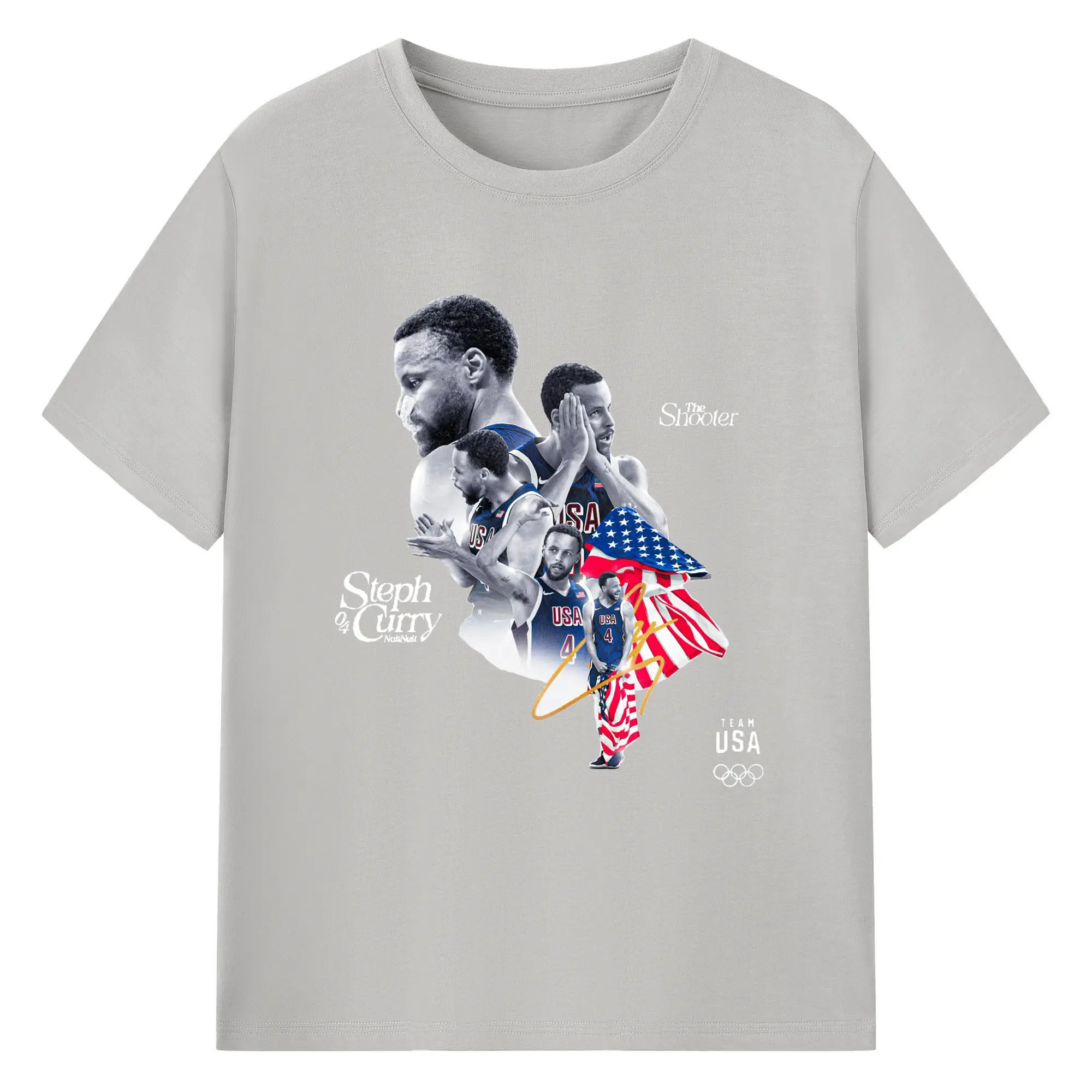 USA Basketball Curry #4 Shirt - 180g Cotton T-Shirt With Front Heat Transfer Print – Soft, Lightweight, Fitted Design – Comfortable Casual Wear For Sports & Everyday Use