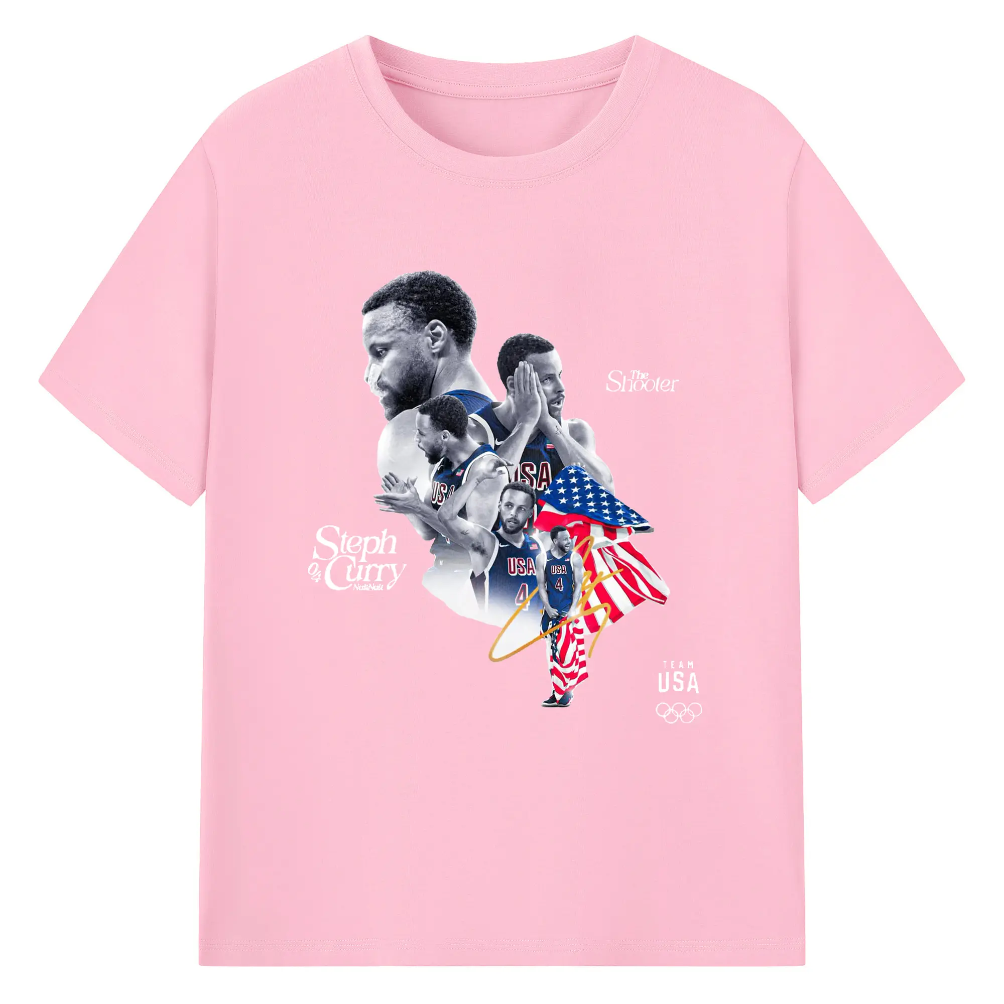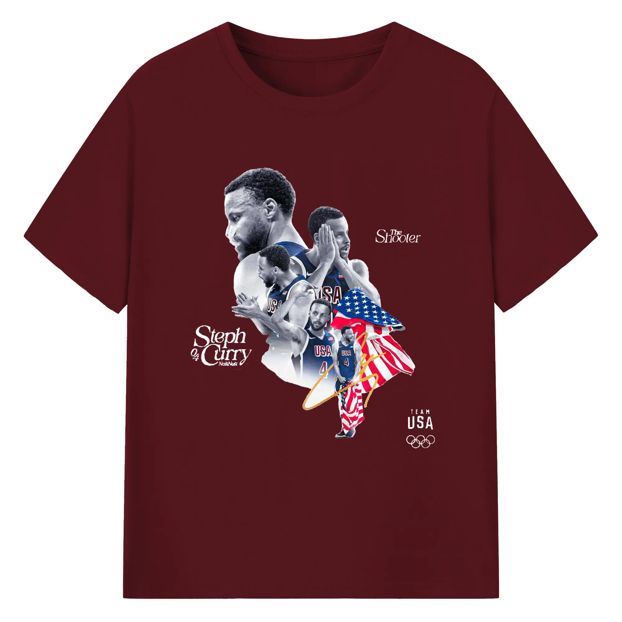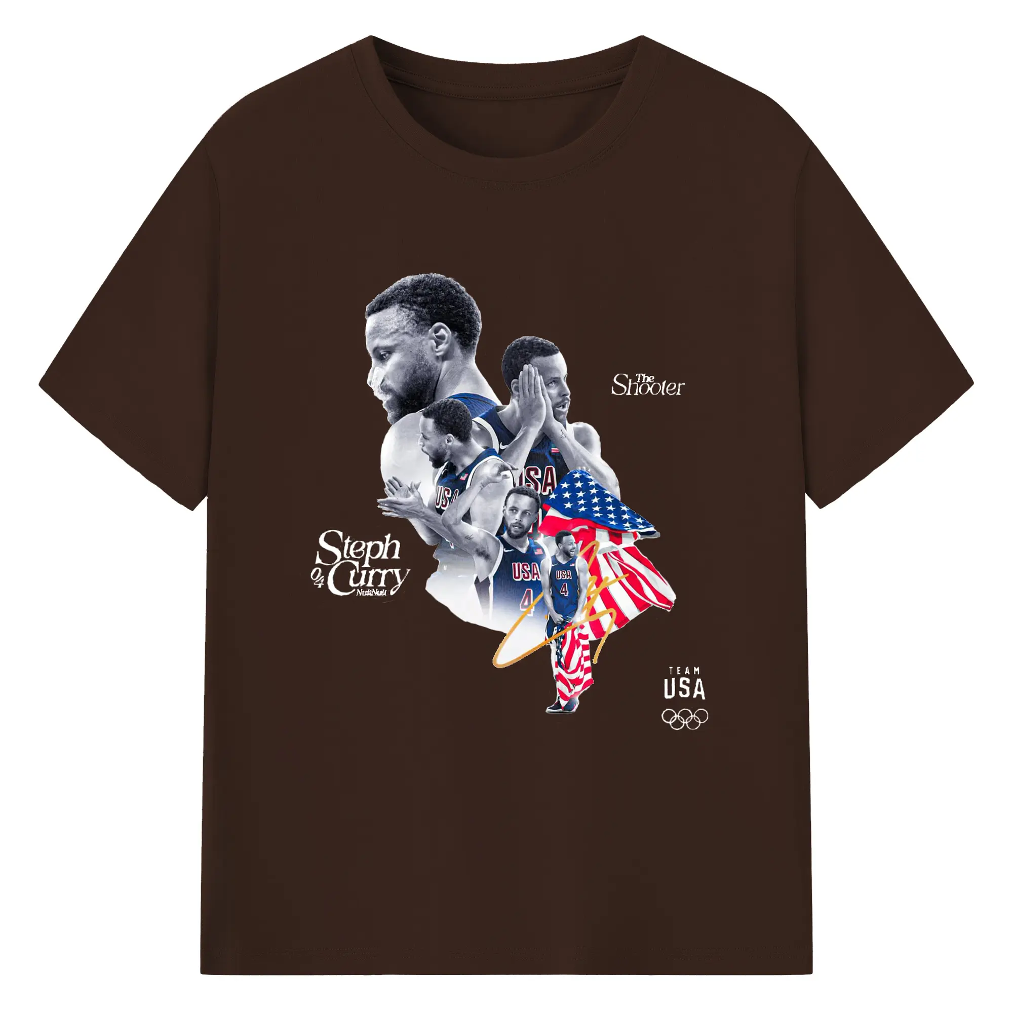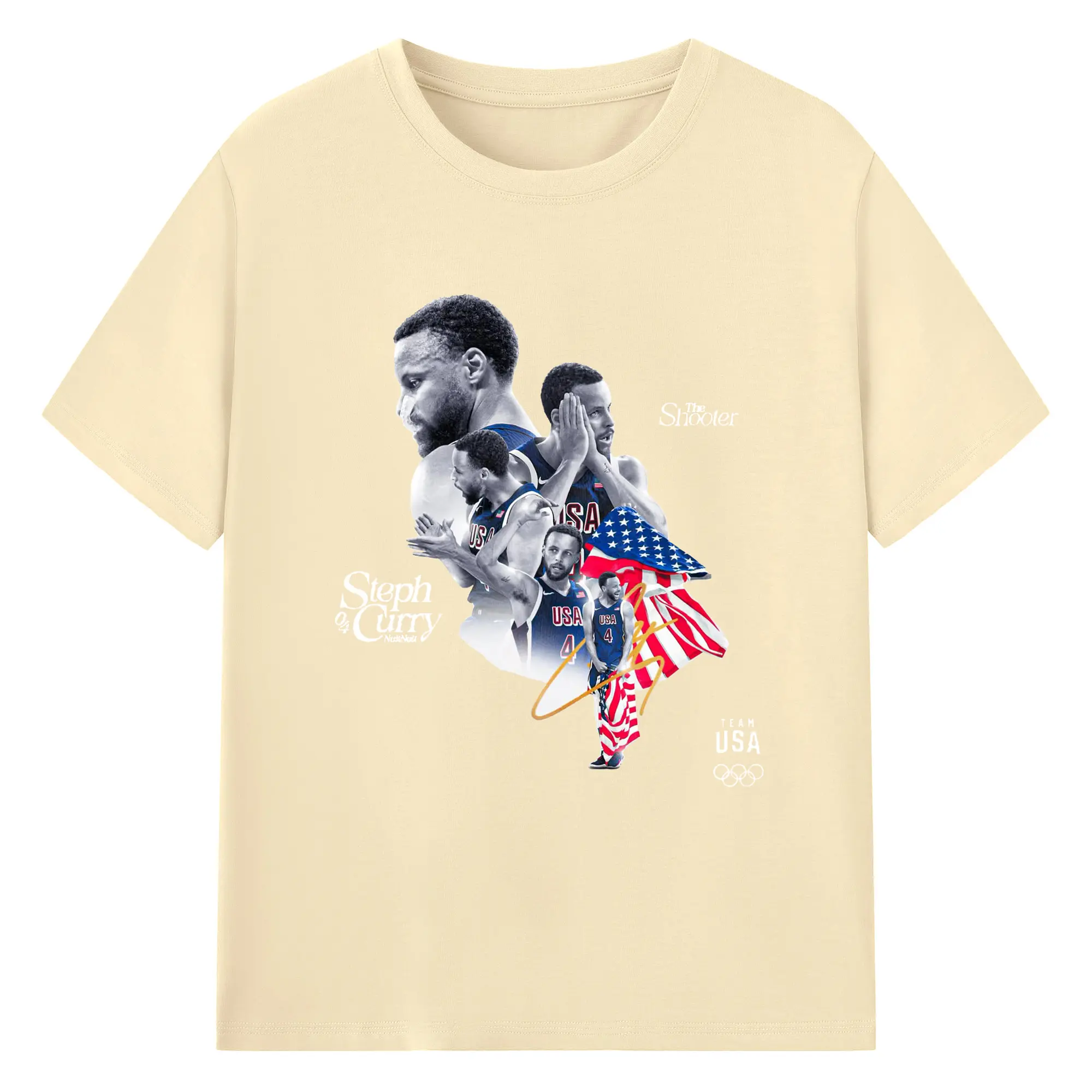 USA Basketball Curry #4 Shirt - 180g Cotton T-Shirt With Front Heat Transfer Print – Soft, Lightweight, Fitted Design – Comfortable Casual Wear For Sports & Everyday Use