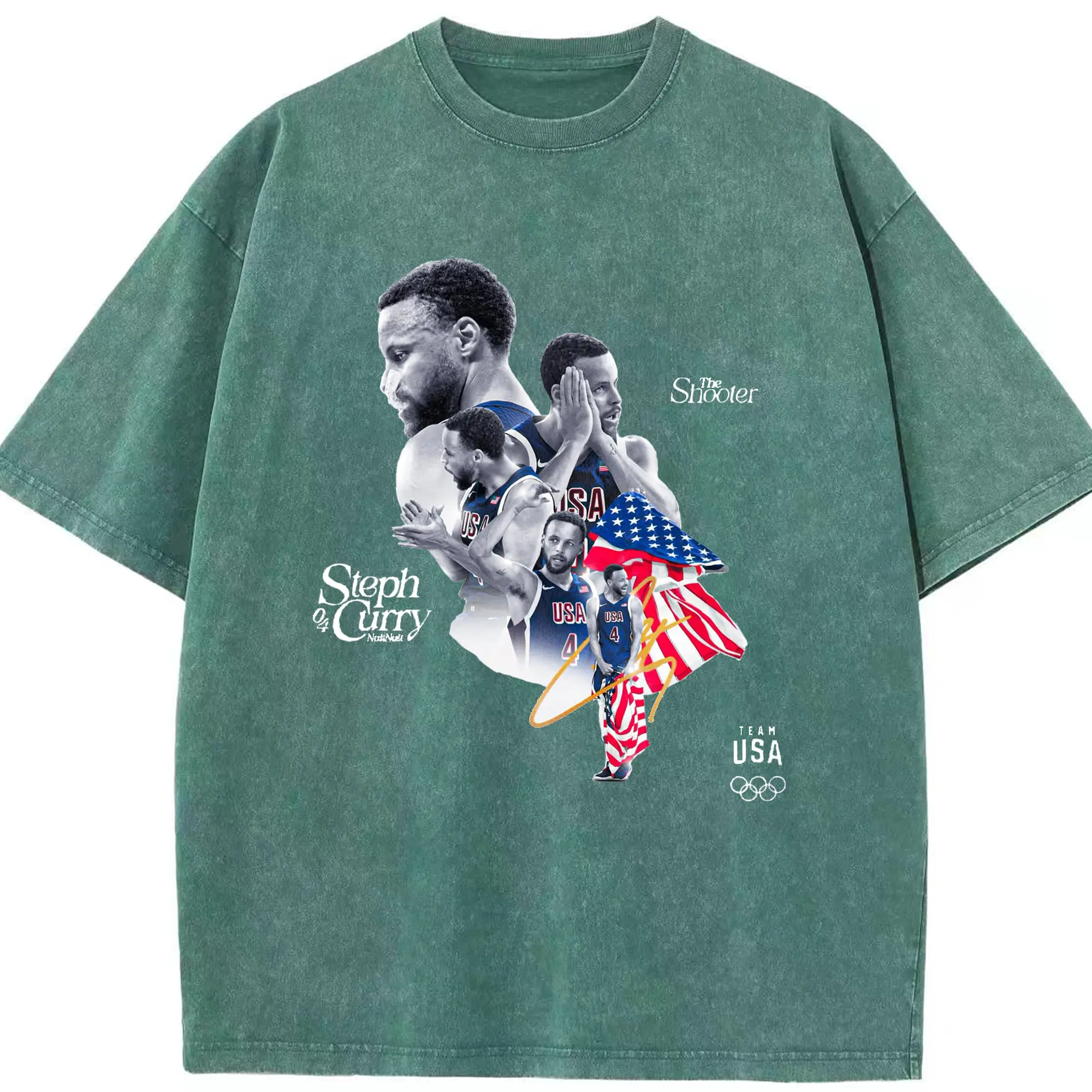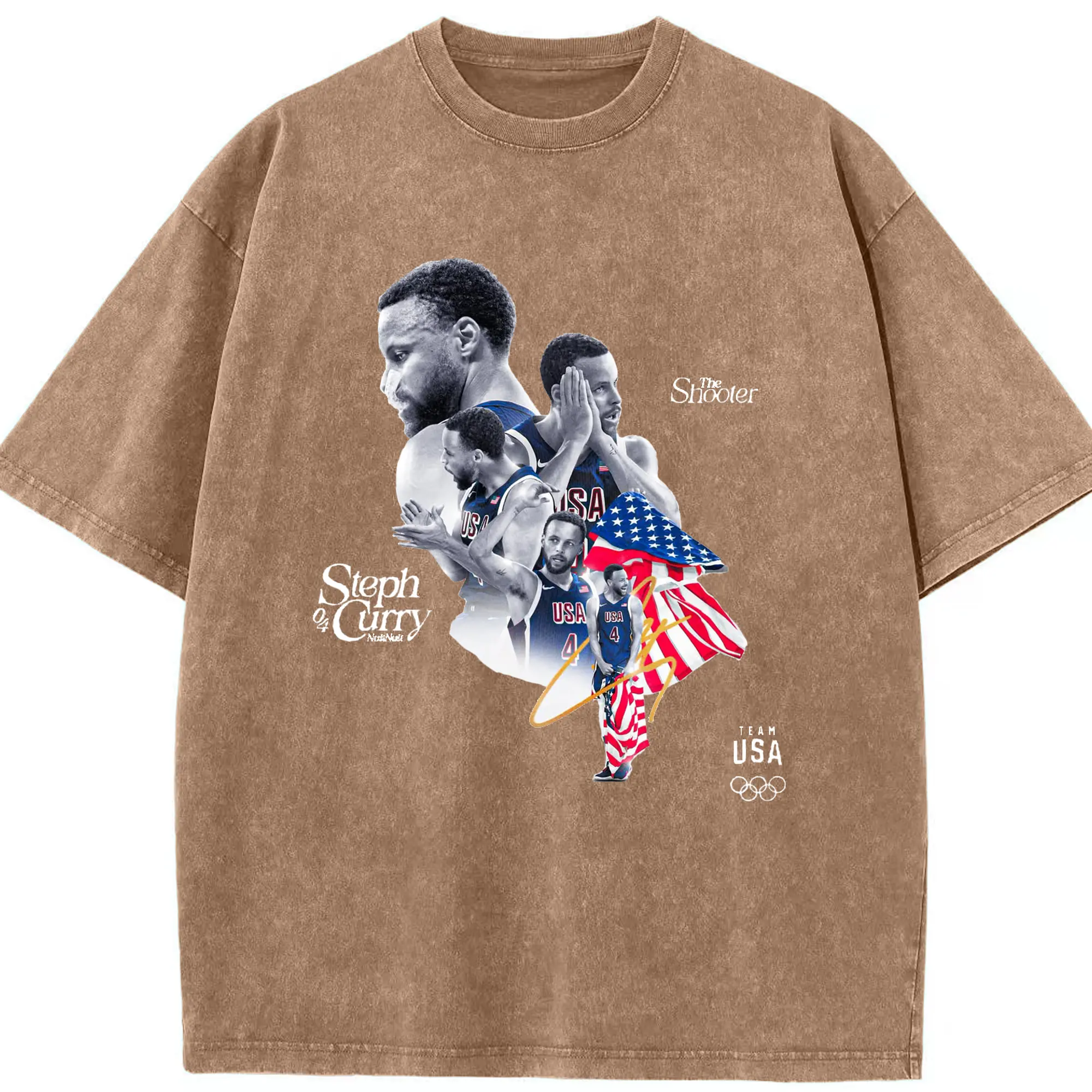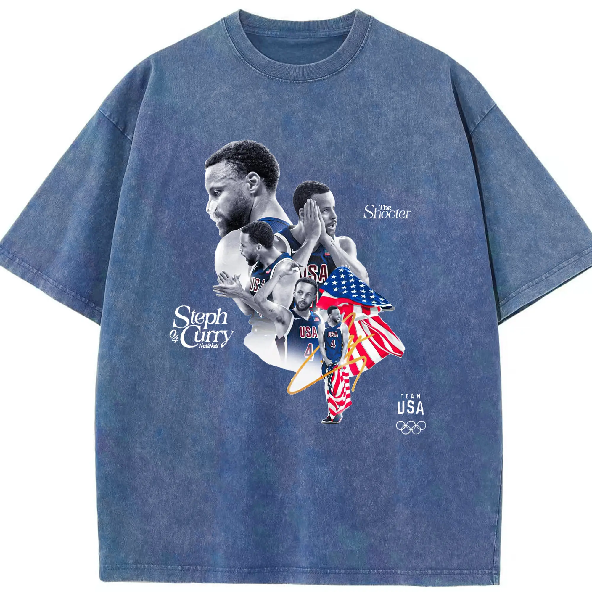 USA Basketball Curry #4 Shirt - Washed Vintage Look 230g Cotton Oversized T-Shirt With Front Heat Transfer Print – Soft, Lightweight, Stylish Fit – Comfortable Casual Wear For Sports & Everyday Use