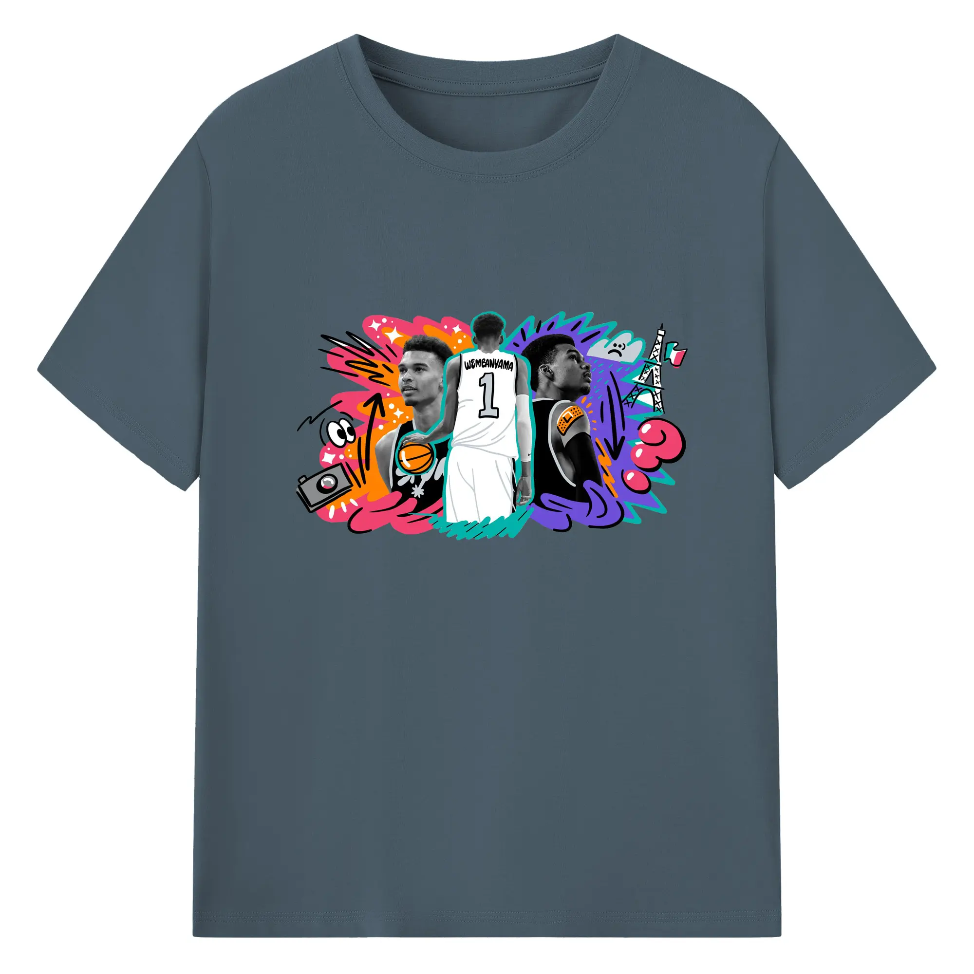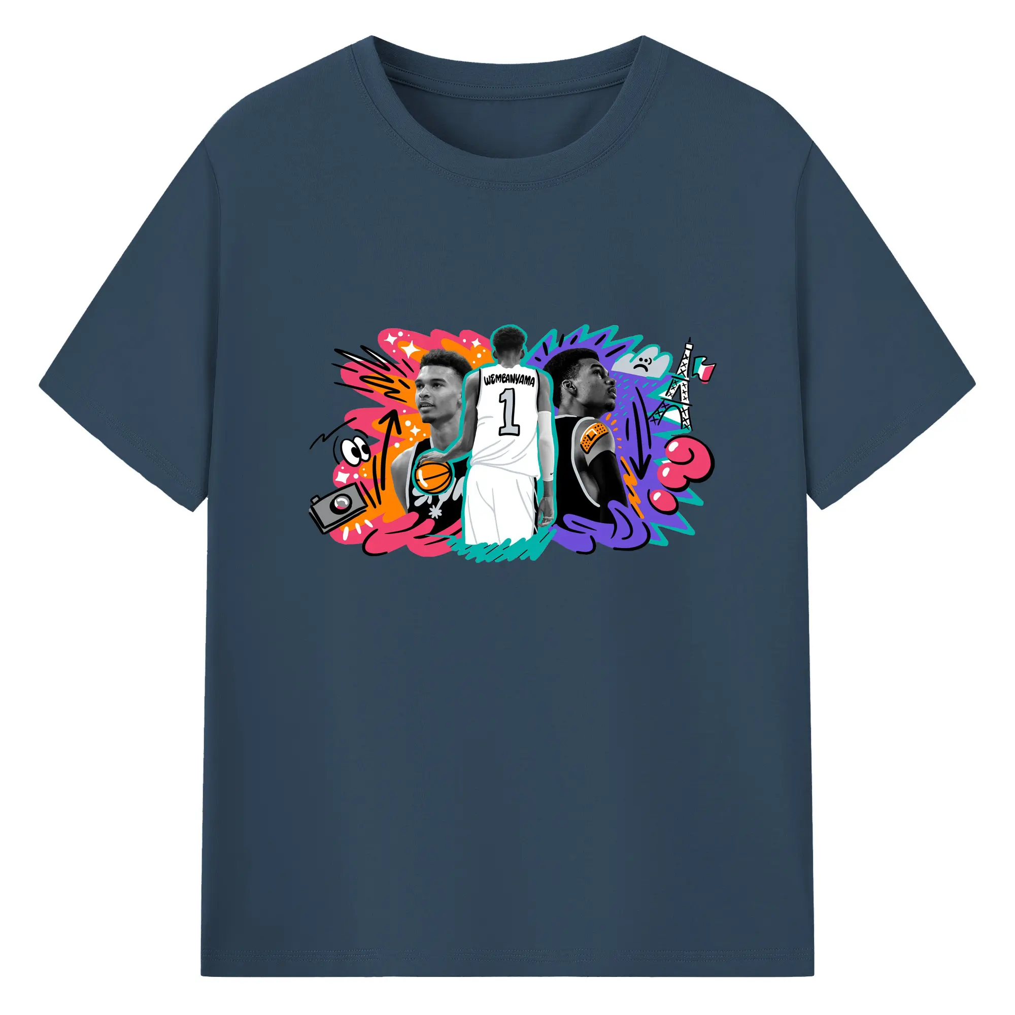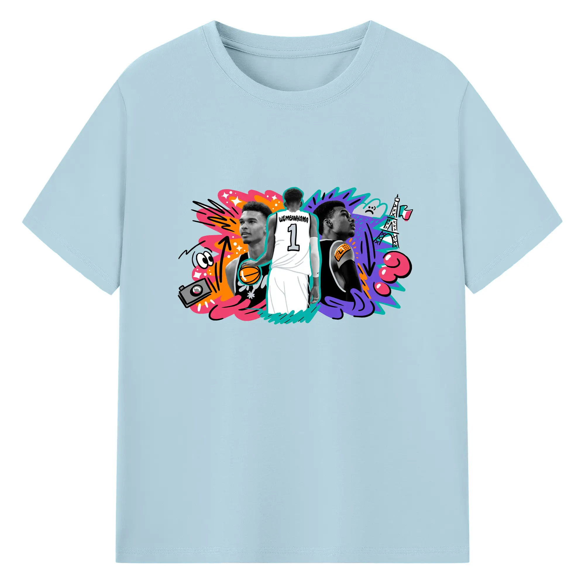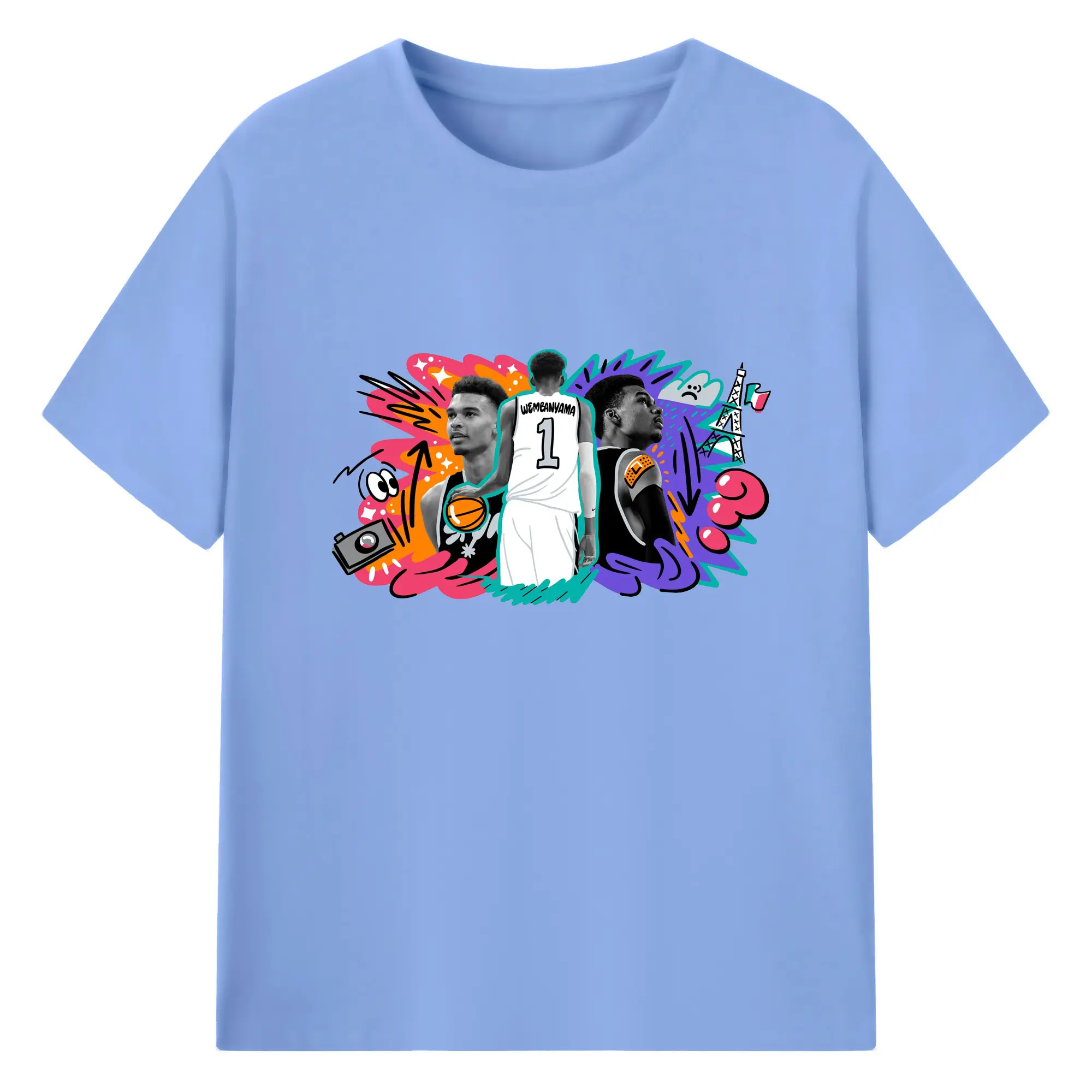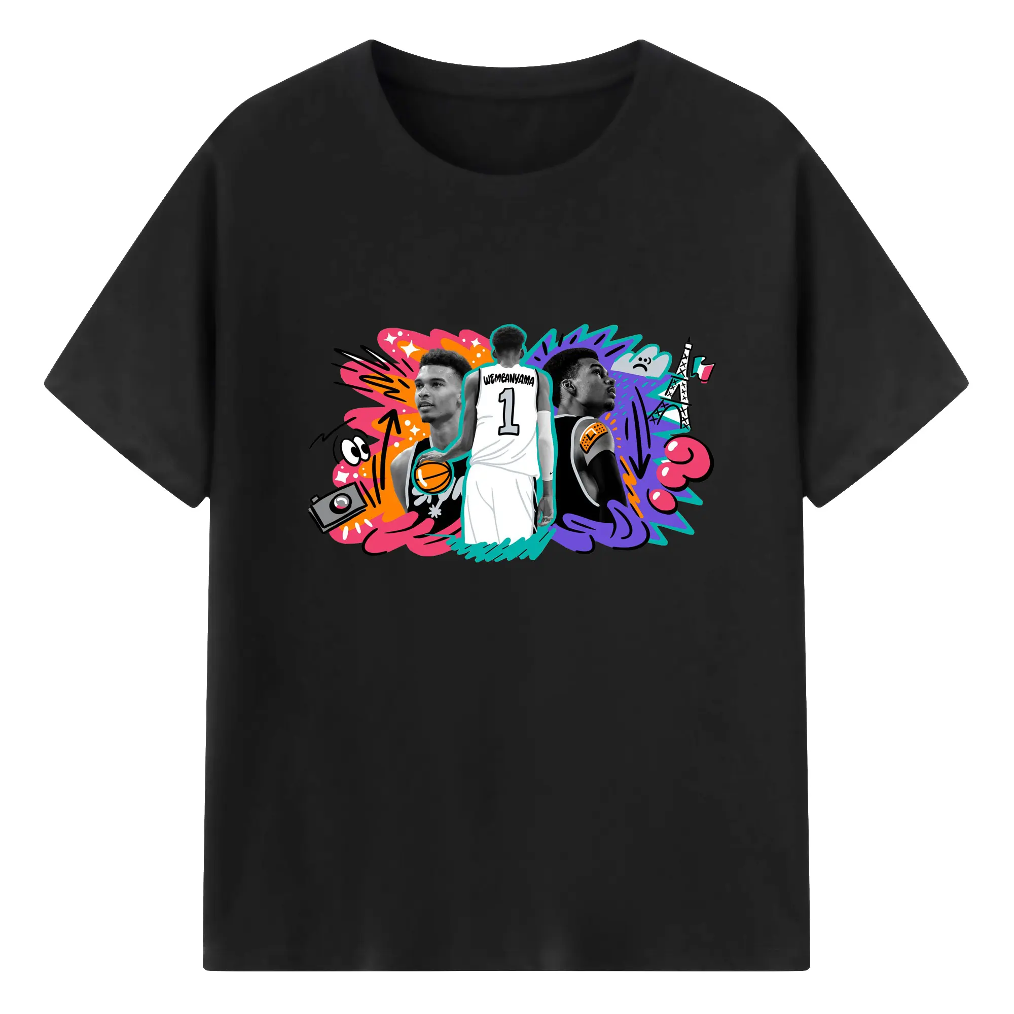 Victor Wembanyama #1 Cartoon graffiti style Shirt - 180g Cotton T-Shirt With Front Heat Transfer Print – Soft, Lightweight, Fitted Design – Comfortable Casual Wear For Sports & Everyday Use
