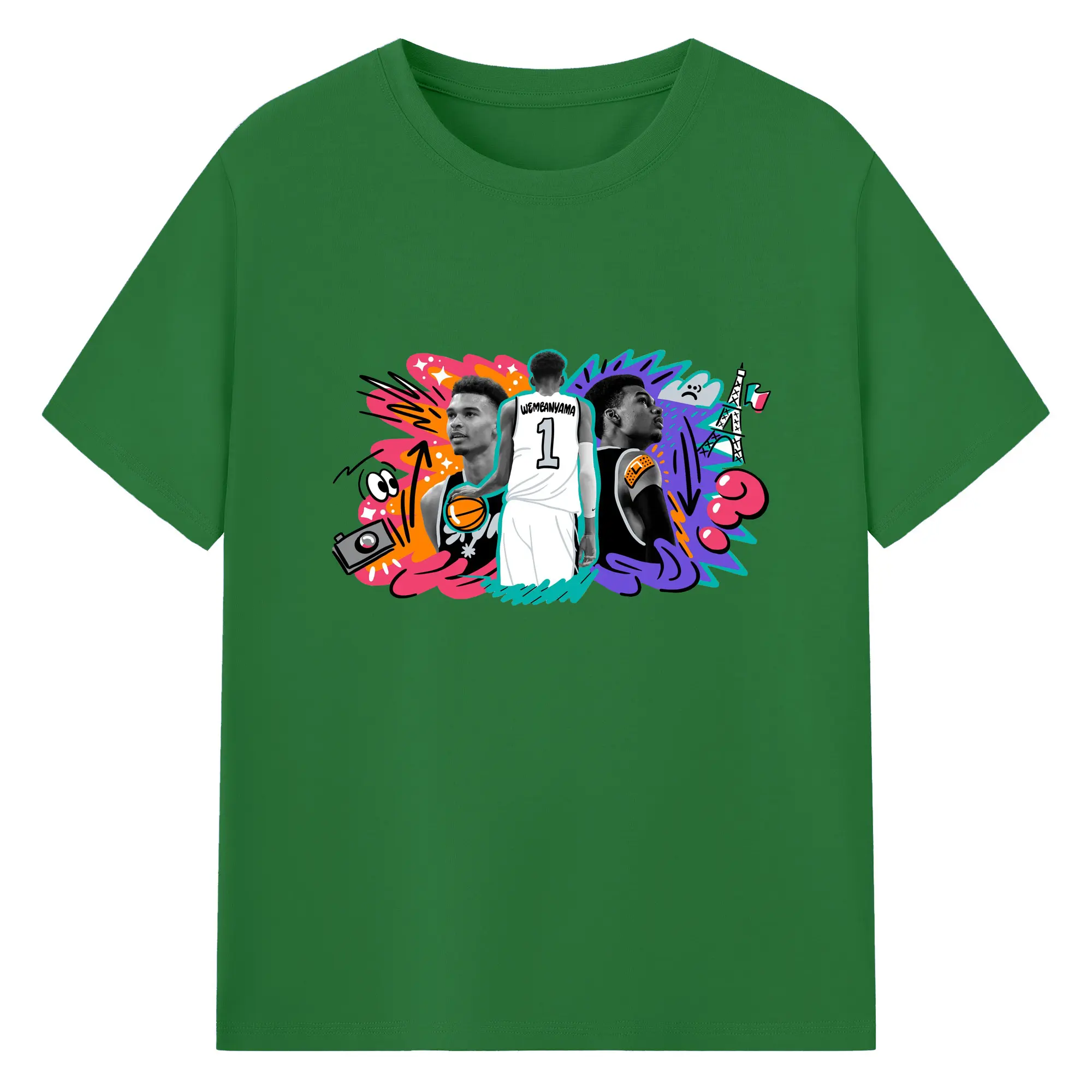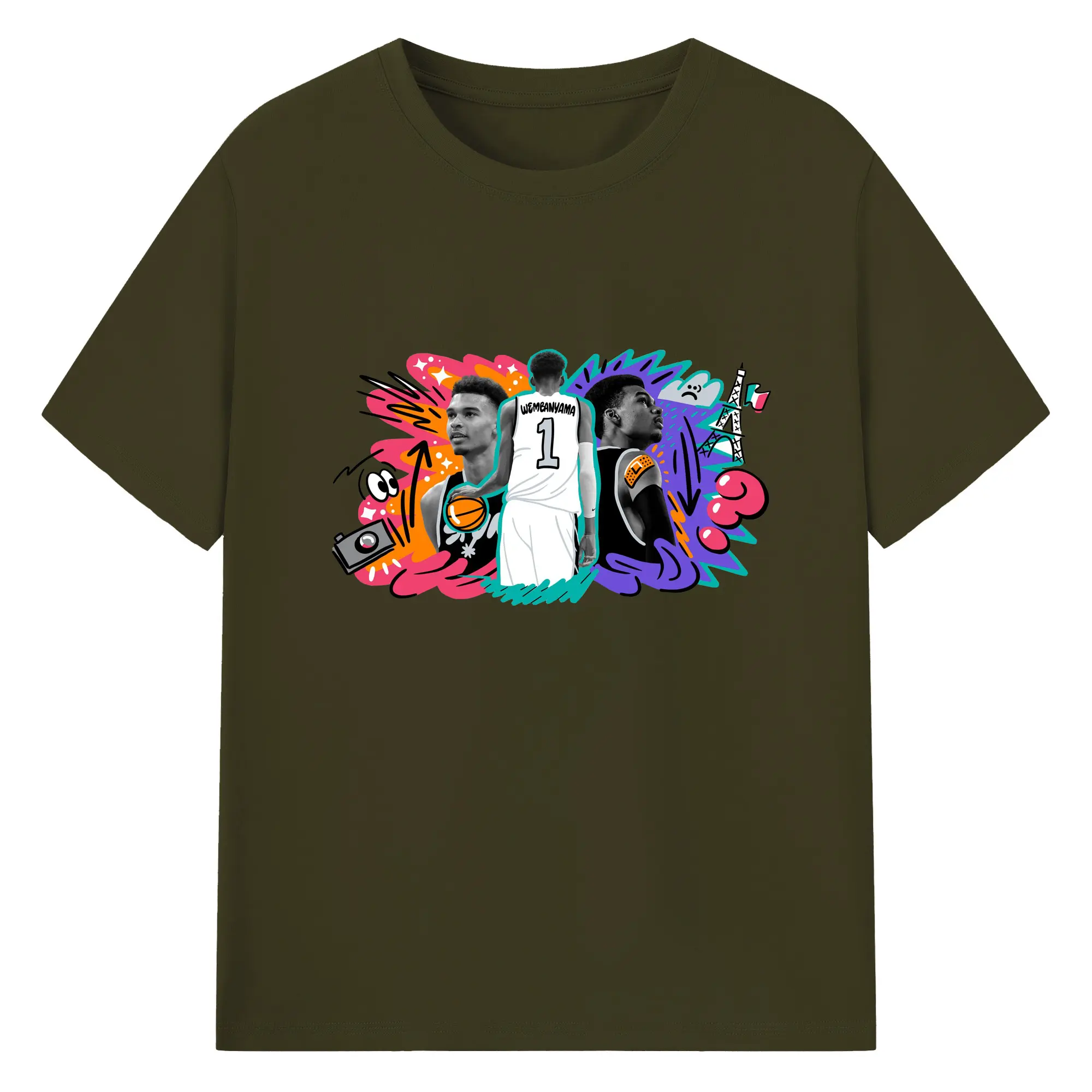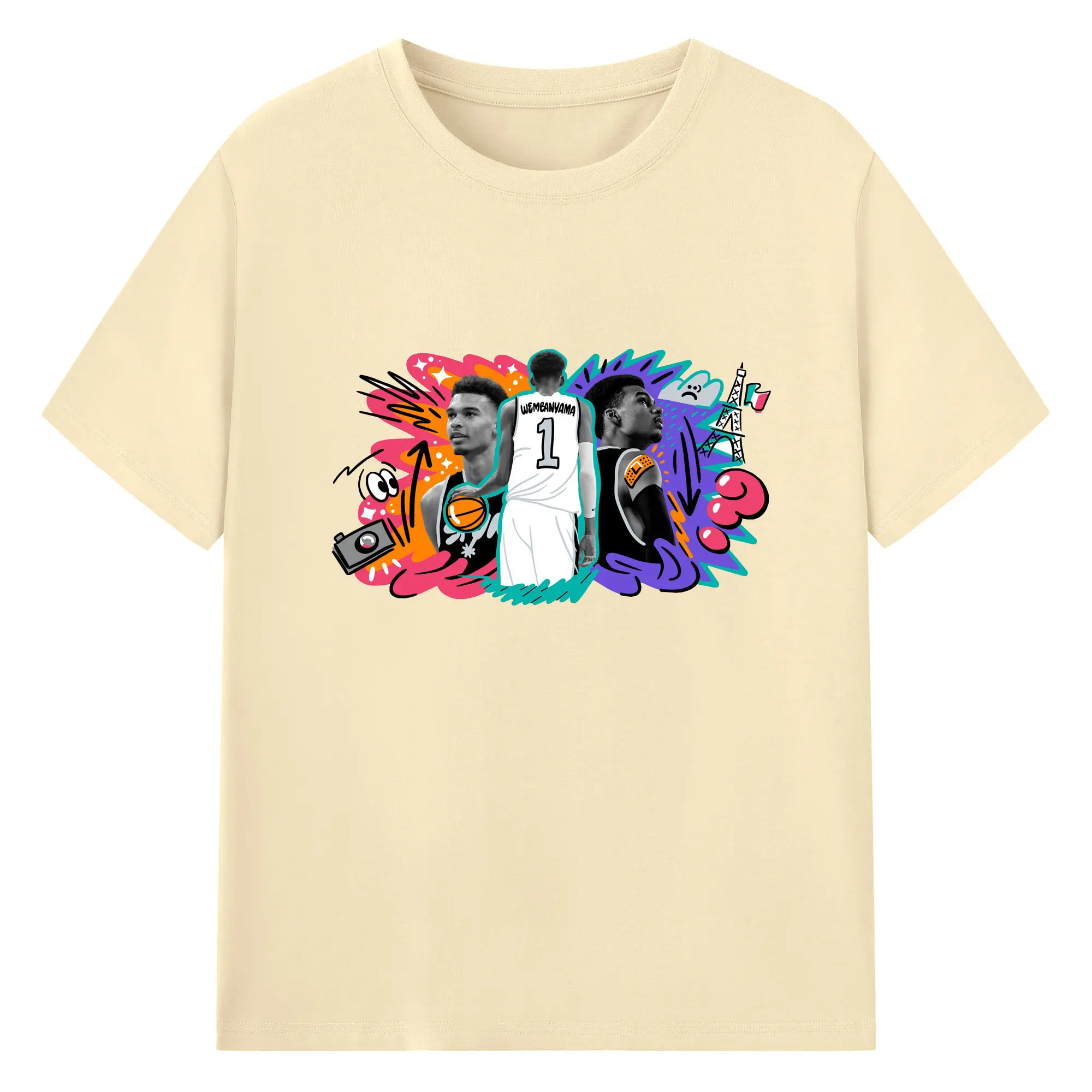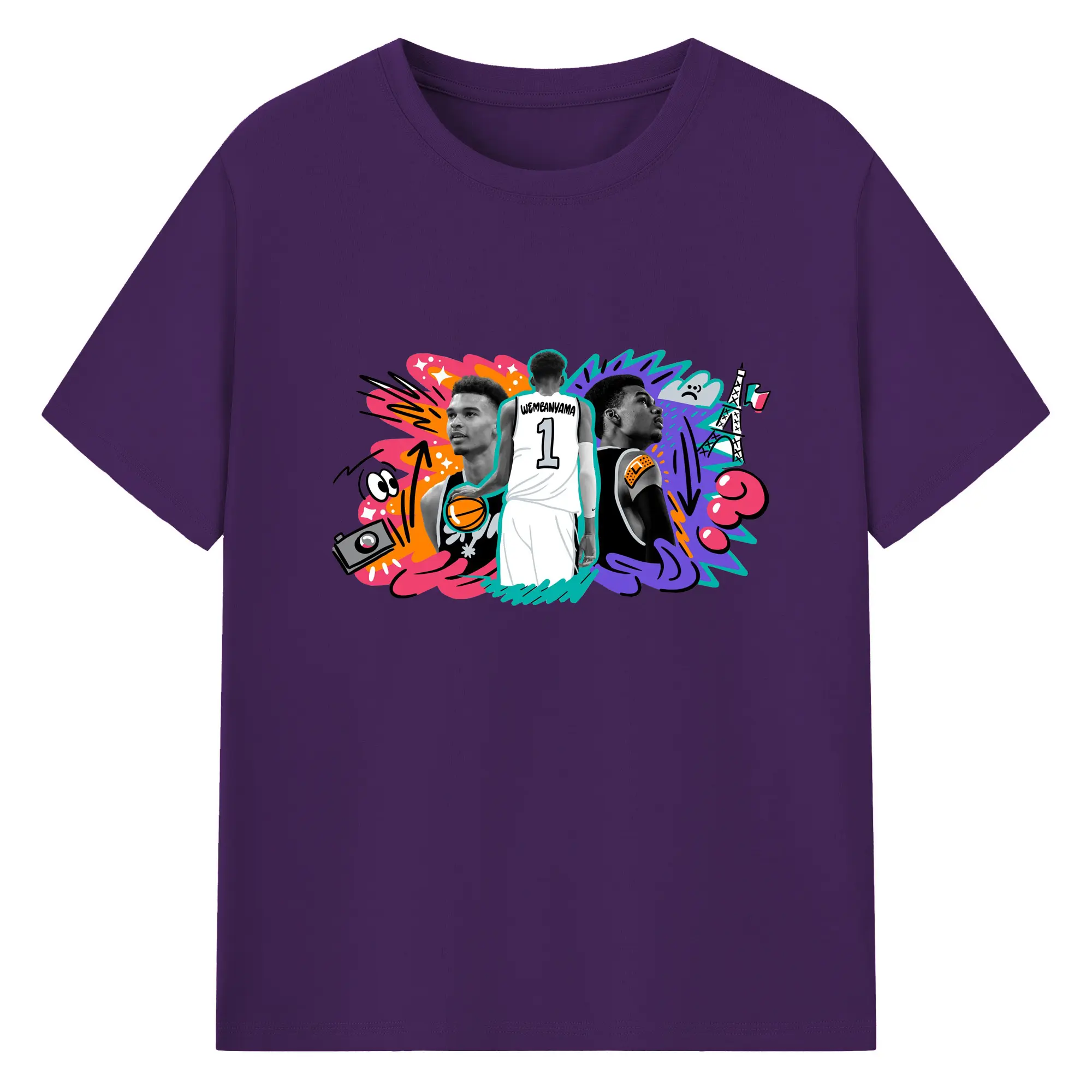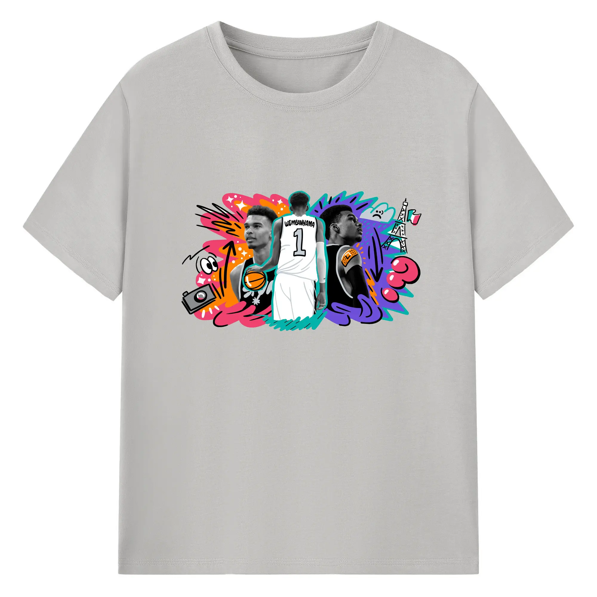 Victor Wembanyama #1 Cartoon graffiti style Shirt - 180g Cotton T-Shirt With Front Heat Transfer Print – Soft, Lightweight, Fitted Design – Comfortable Casual Wear For Sports & Everyday Use