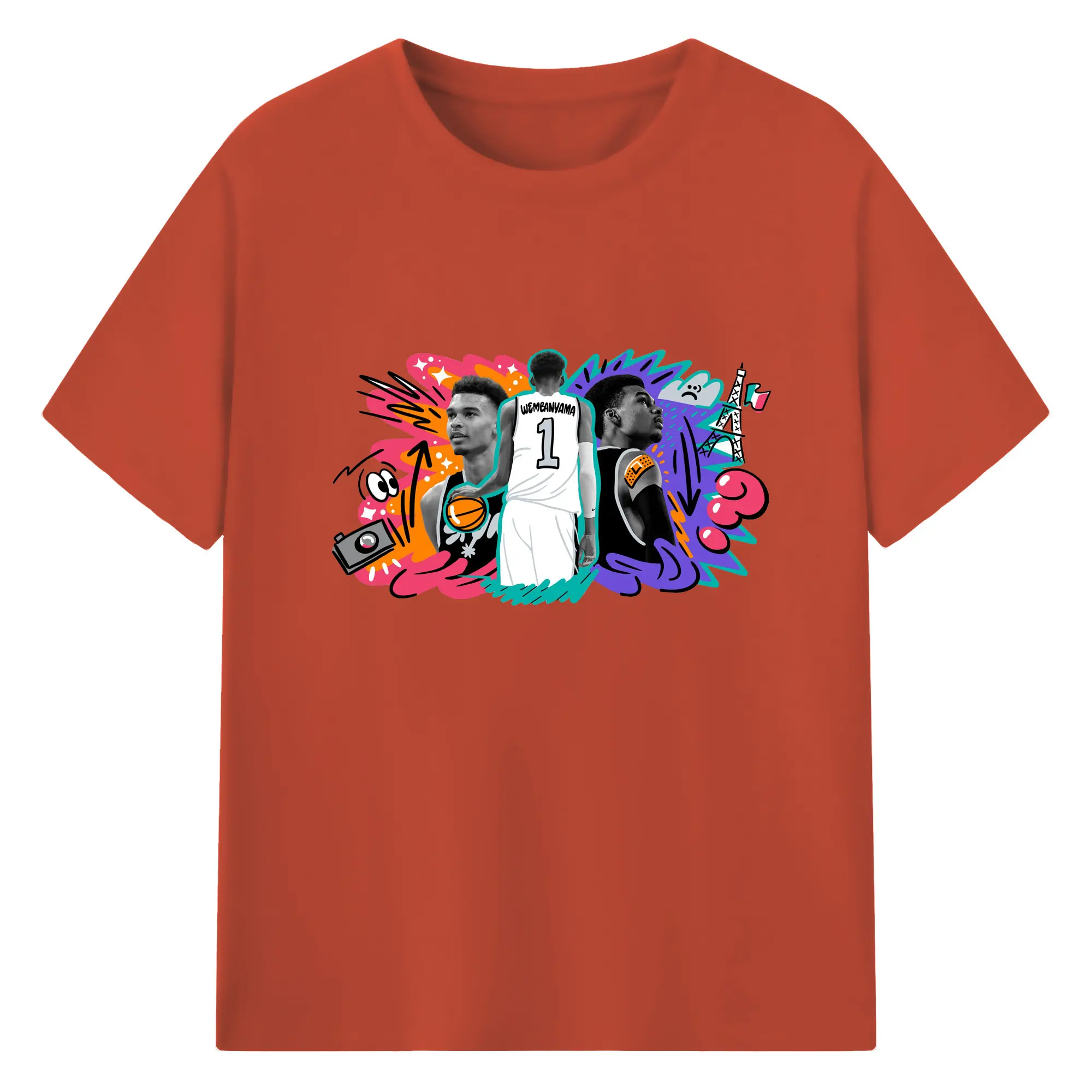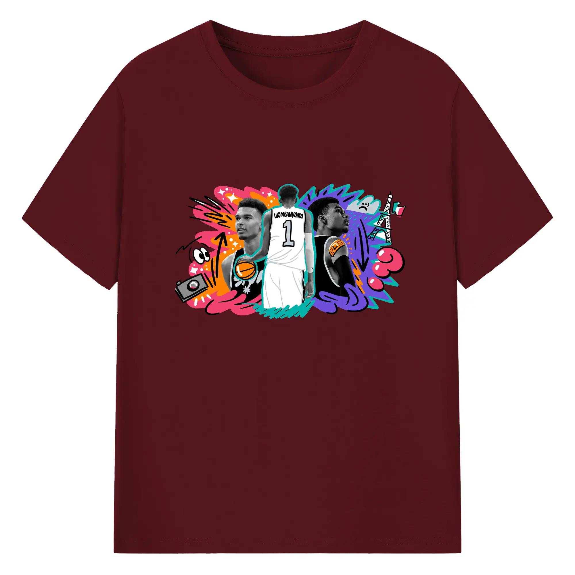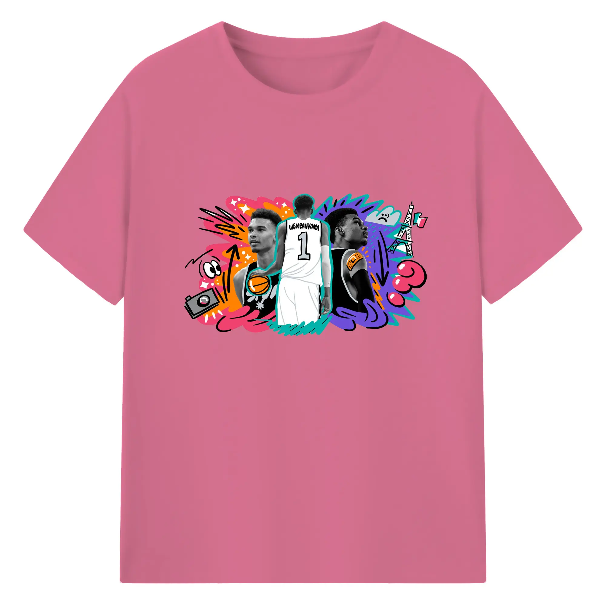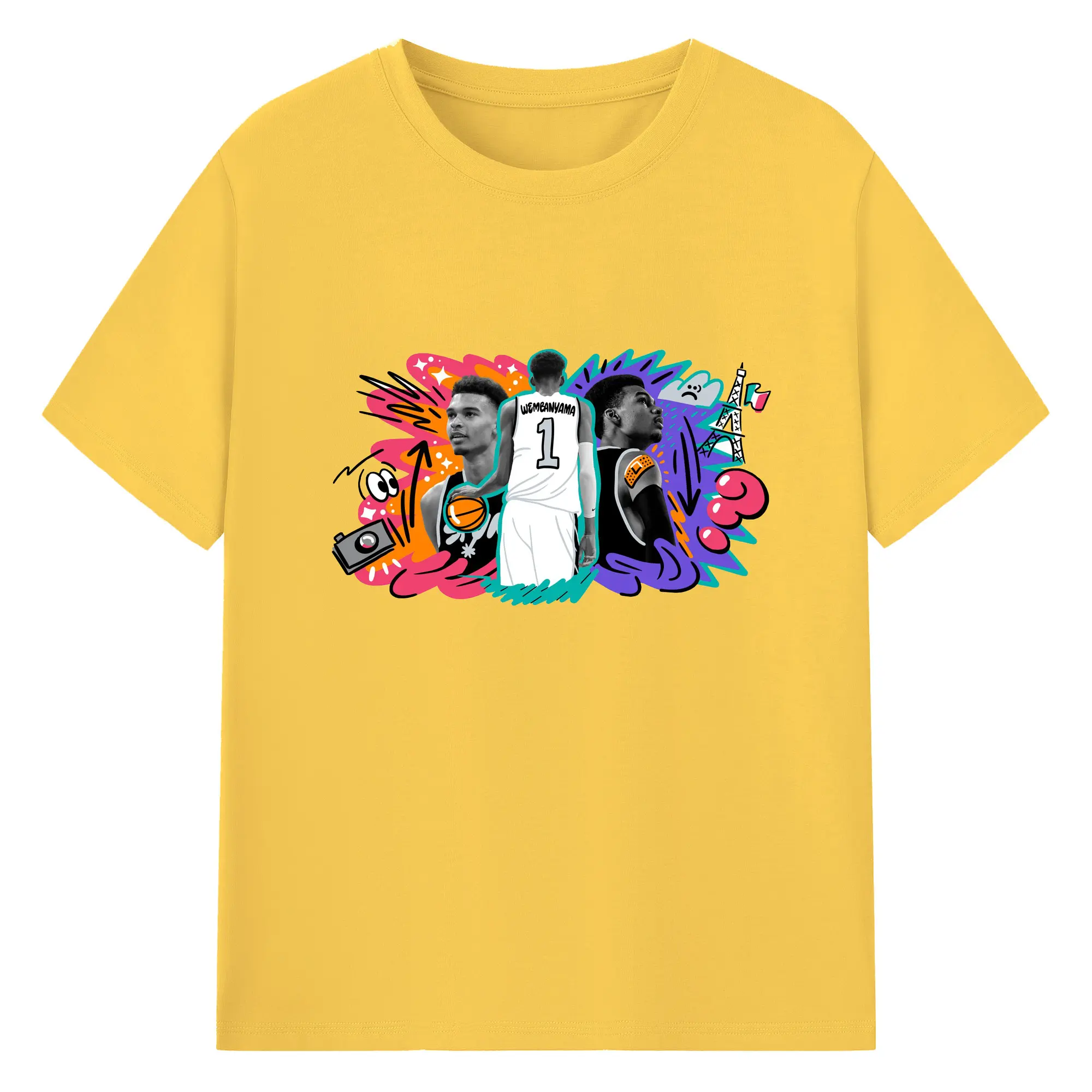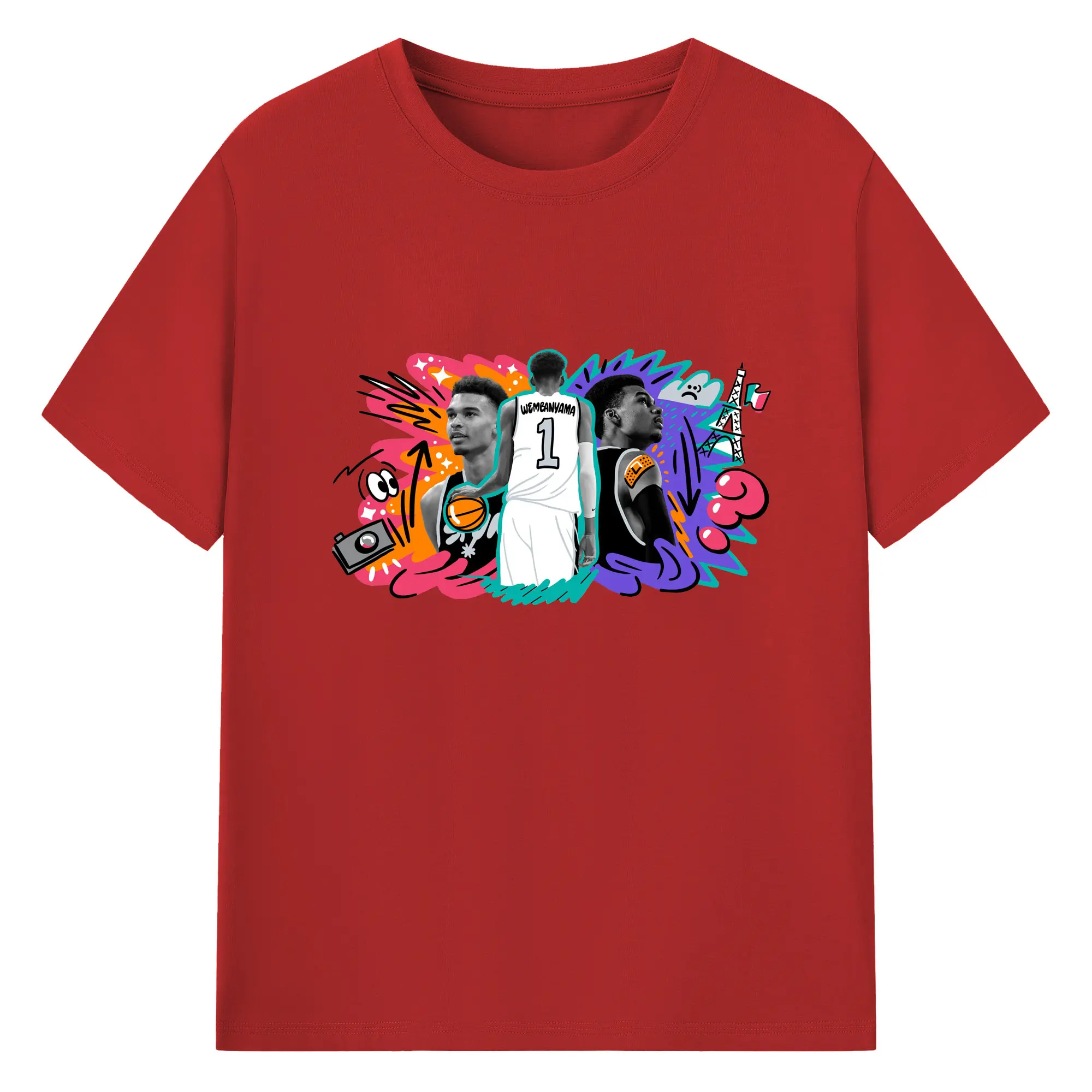 Victor Wembanyama #1 Cartoon graffiti style Shirt - 180g Cotton T-Shirt With Front Heat Transfer Print – Soft, Lightweight, Fitted Design – Comfortable Casual Wear For Sports & Everyday Use