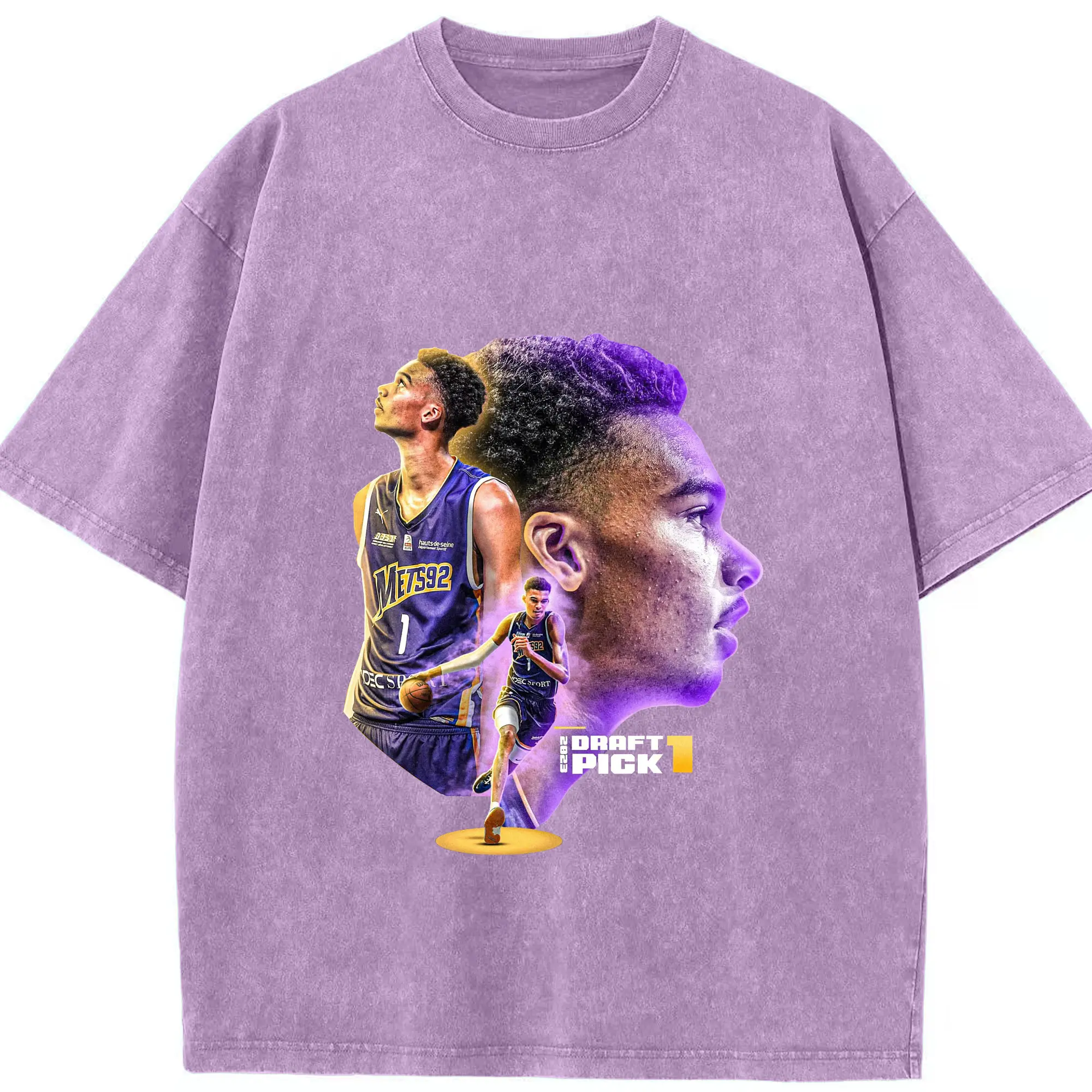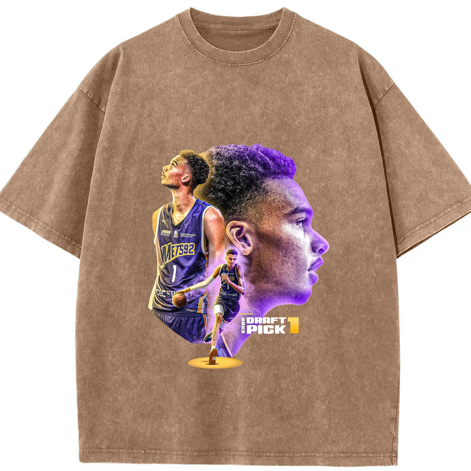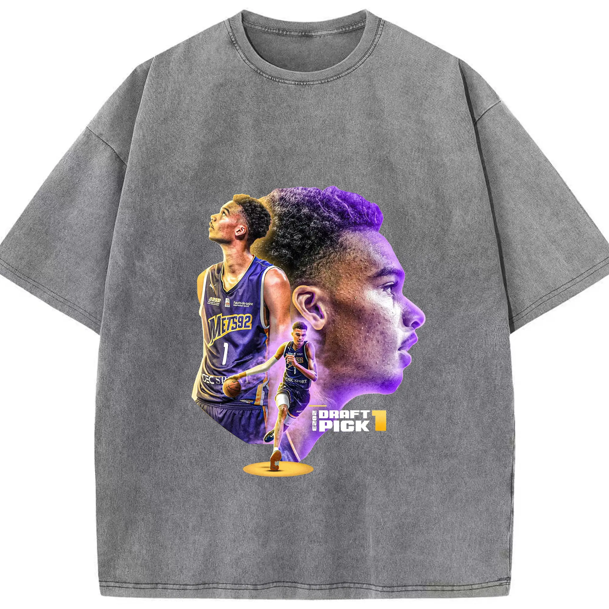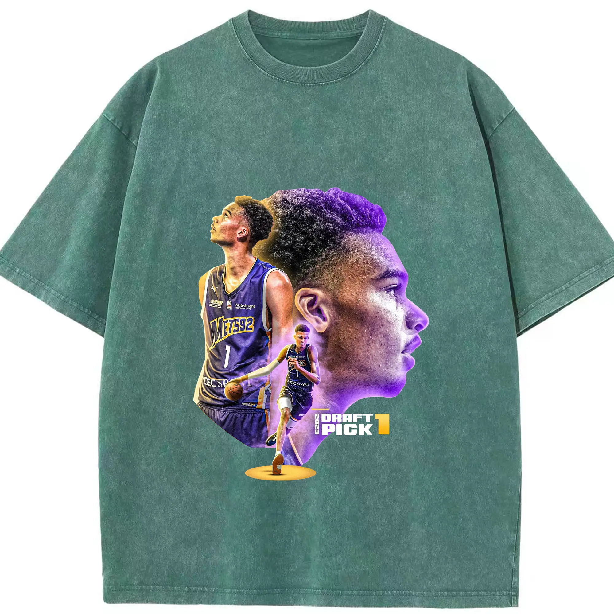 Victor Wembanyama Draft Day Shirt – 2023 No.1 Pick - Washed Vintage Look 230g Cotton Oversized T-Shirt With Front Heat Transfer Print – Soft, Lightweight, Stylish Fit – Comfortable Casual Wear For Sports & Everyday Use