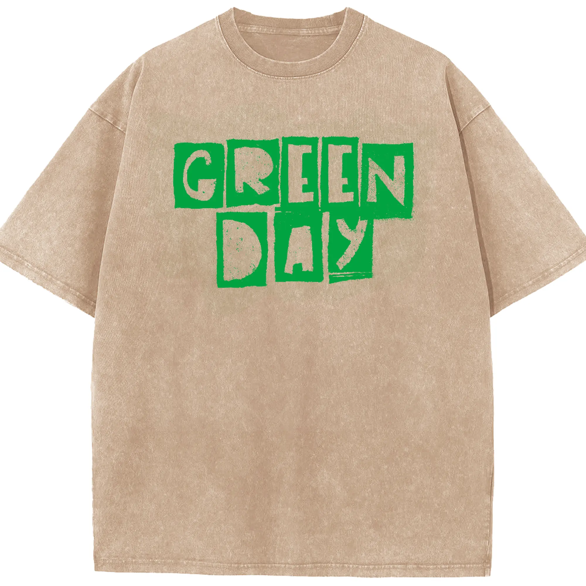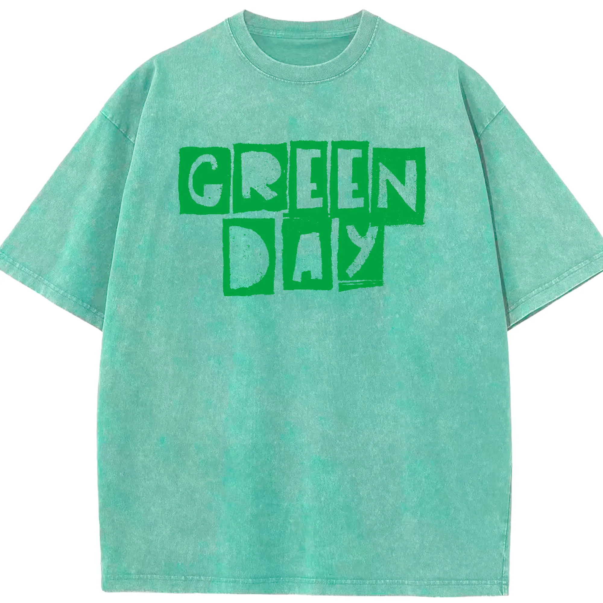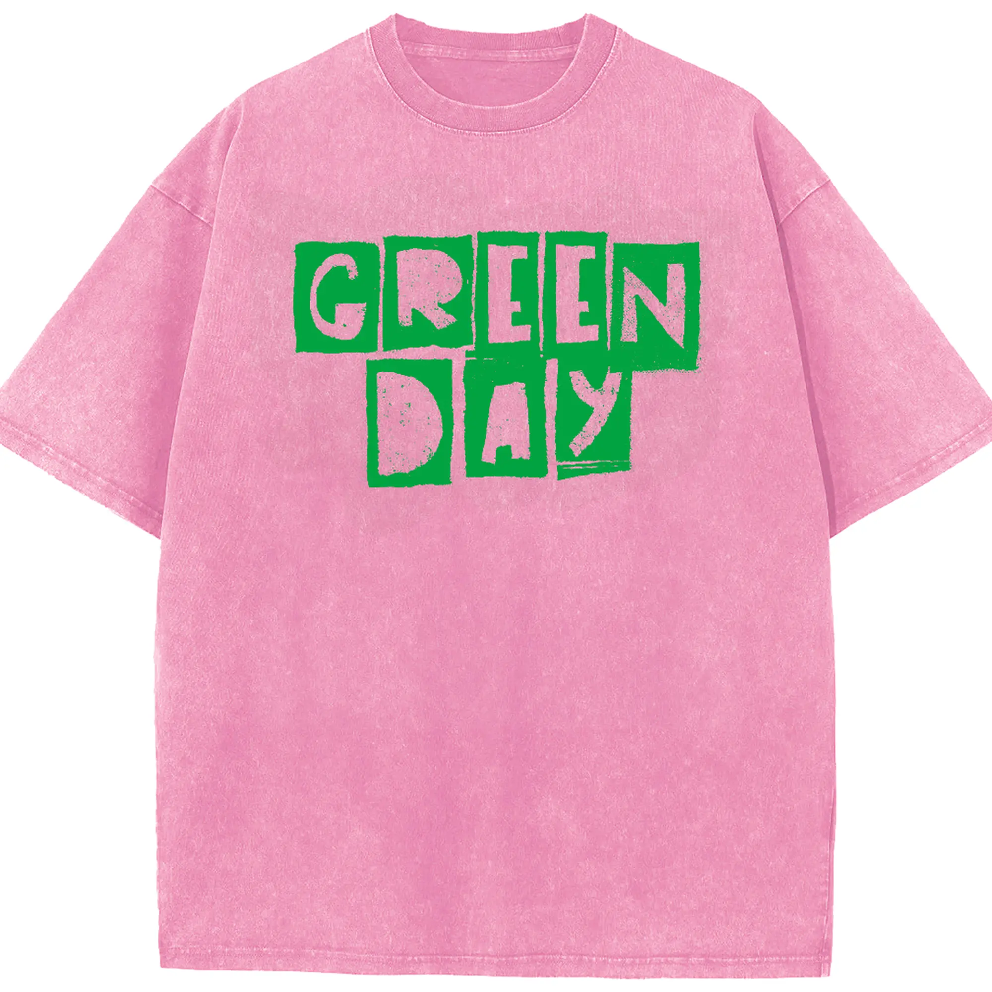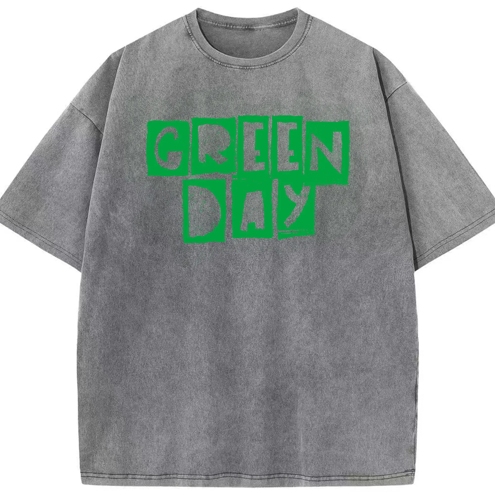 Vintage Green Day Logo DIY Shirt - Washed Vintage Look 230g Cotton Oversized T-Shirt With Front Heat Transfer Print – Soft, Lightweight, Stylish Fit – Comfortable Casual Wear For Sports & Everyday Use