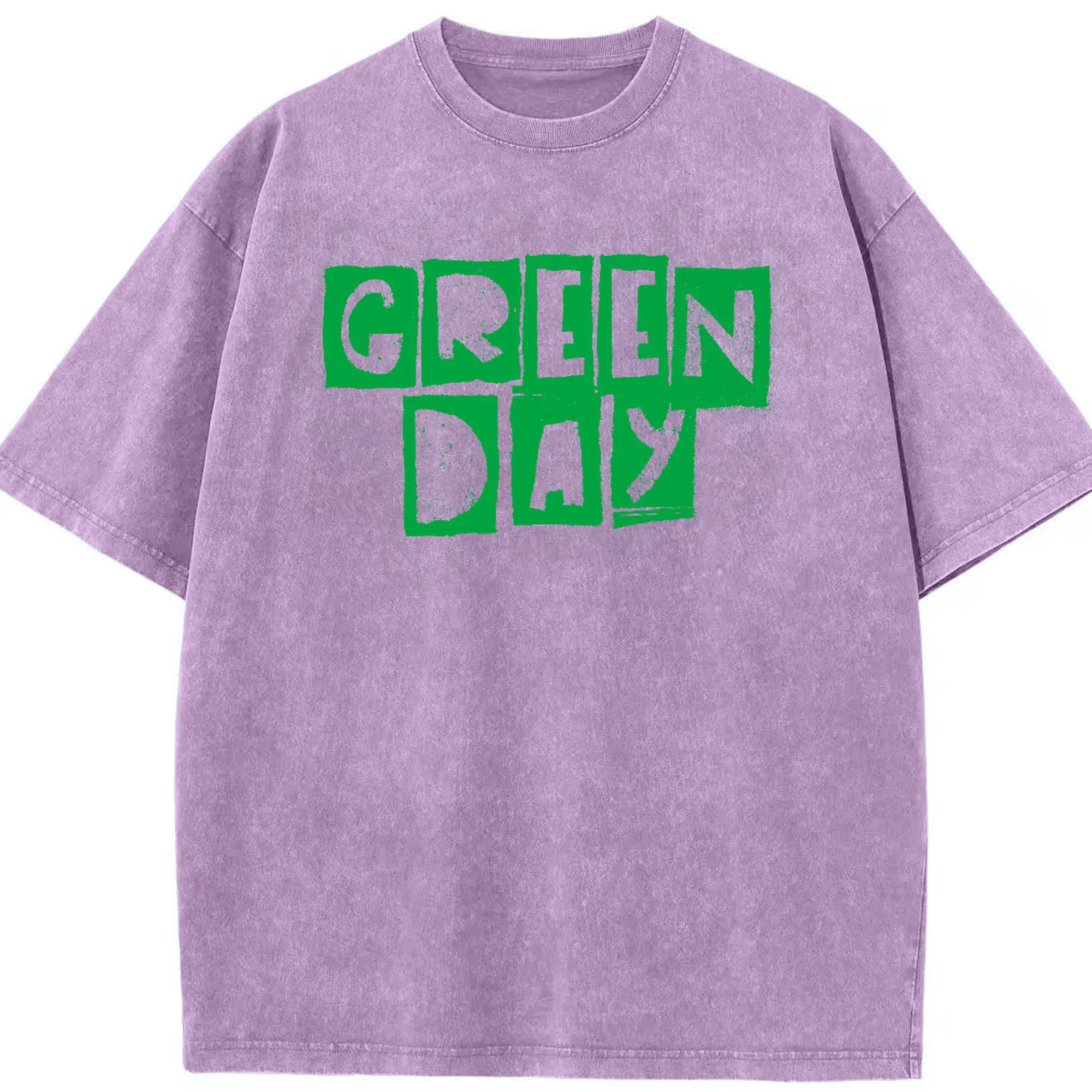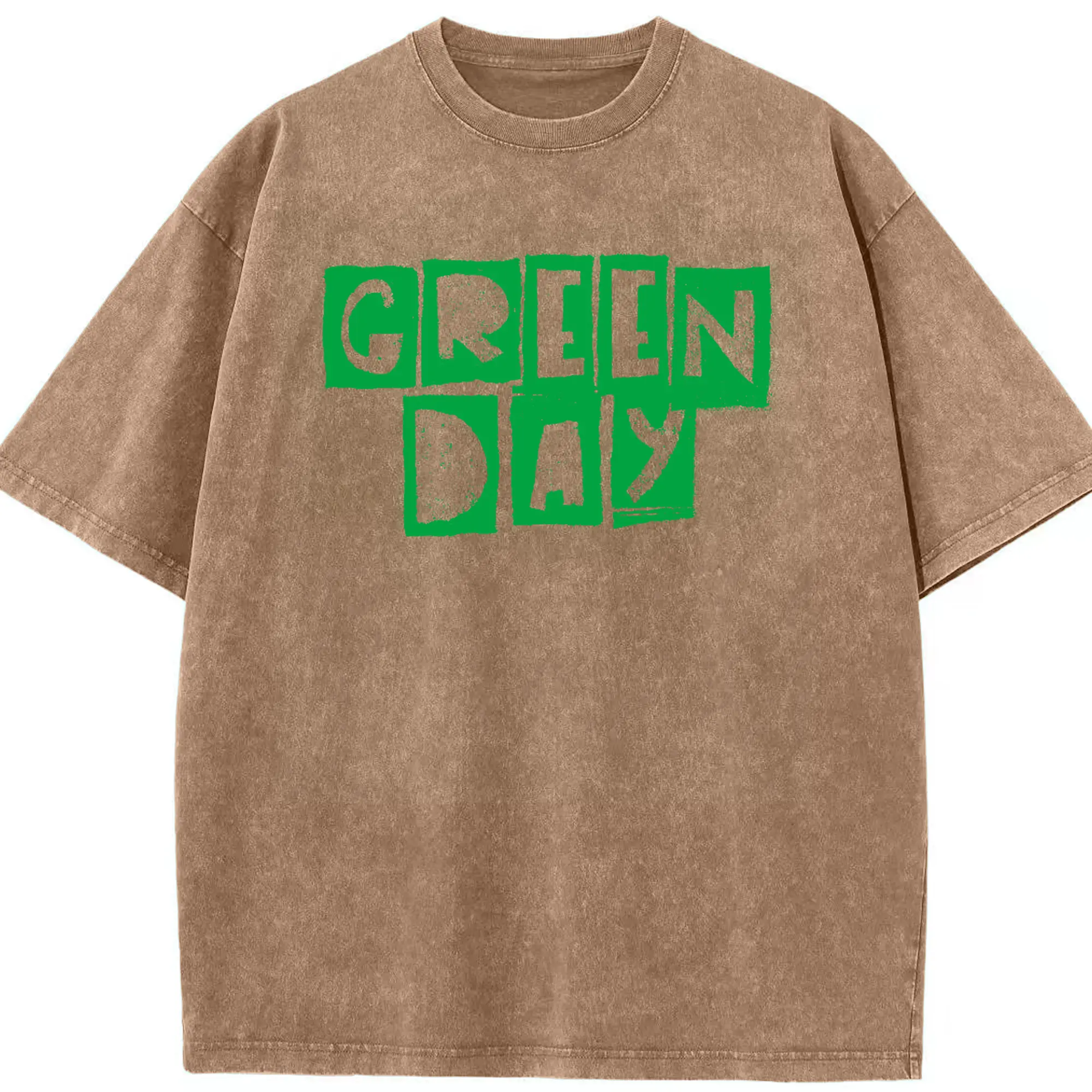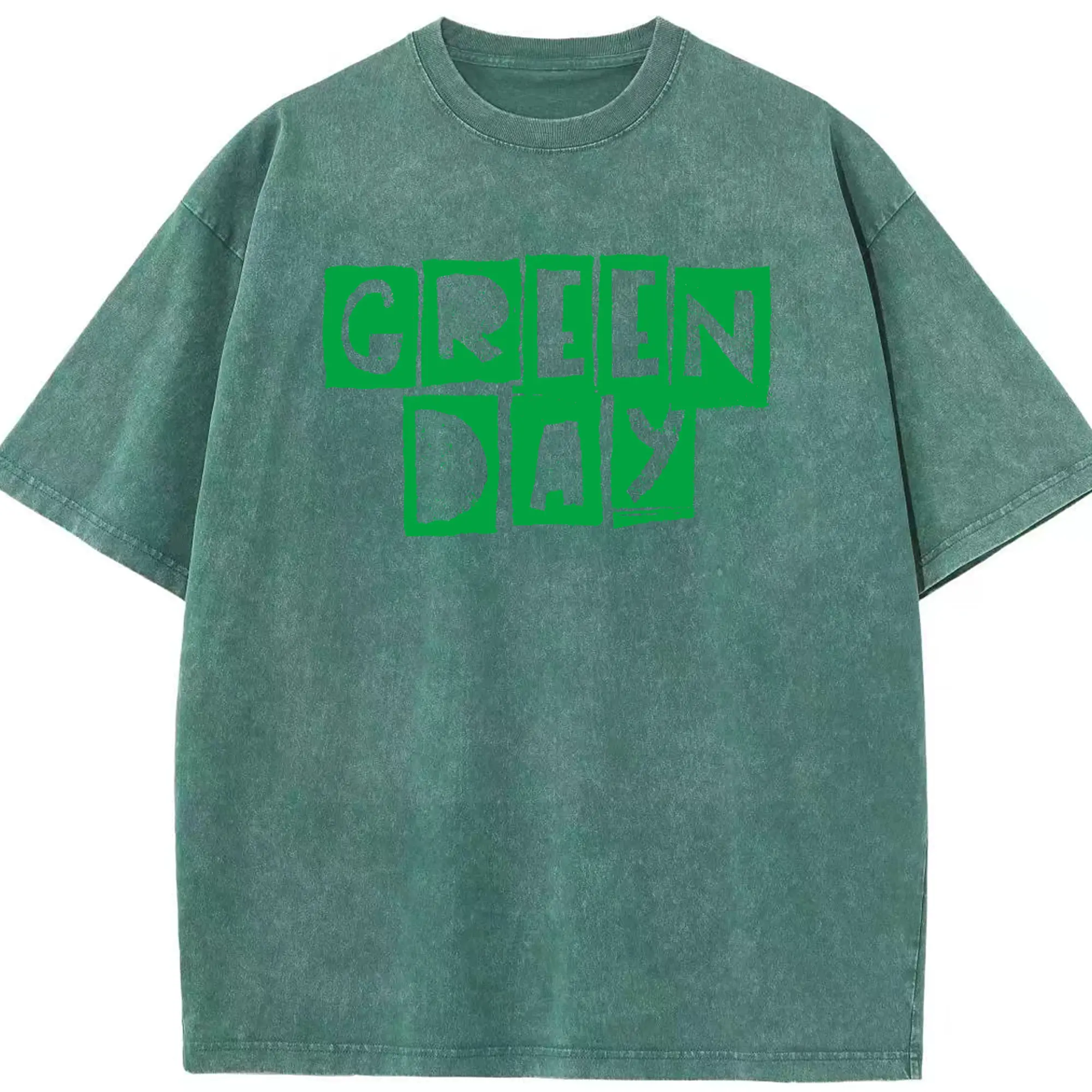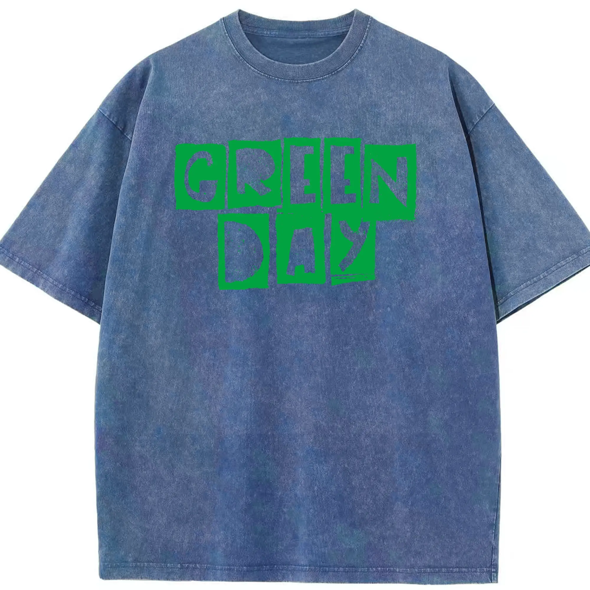 Vintage Green Day Logo DIY Shirt - Washed Vintage Look 230g Cotton Oversized T-Shirt With Front Heat Transfer Print – Soft, Lightweight, Stylish Fit – Comfortable Casual Wear For Sports & Everyday Use