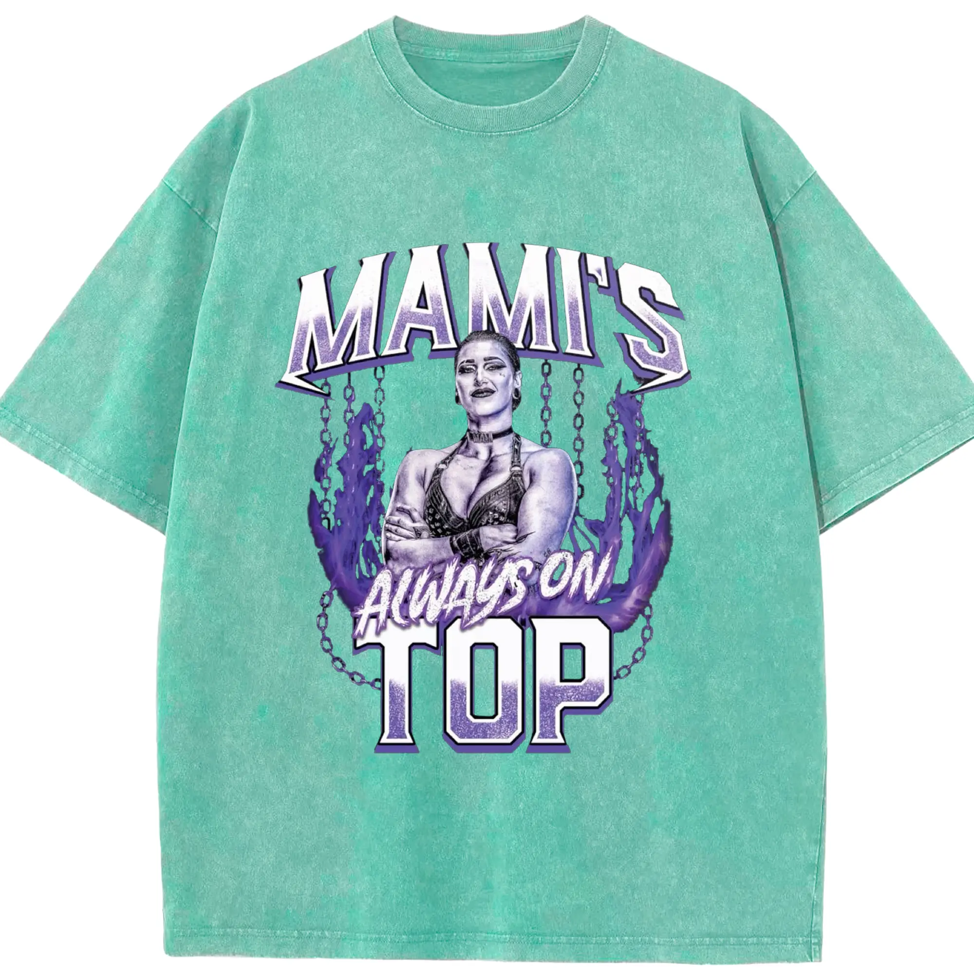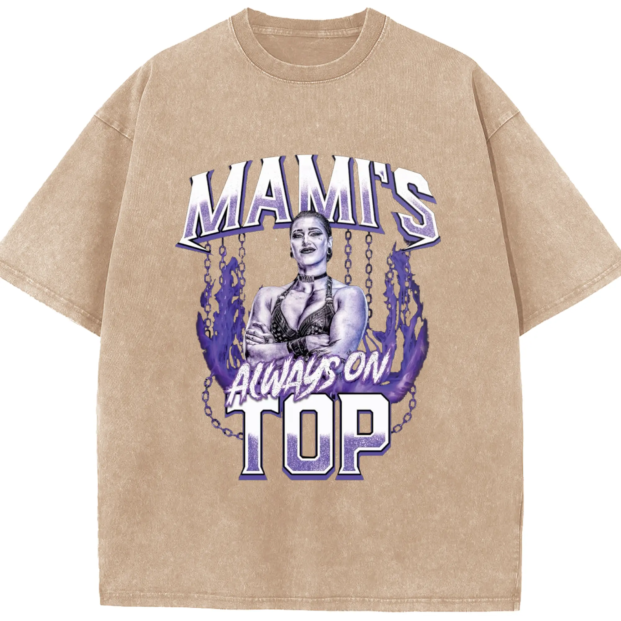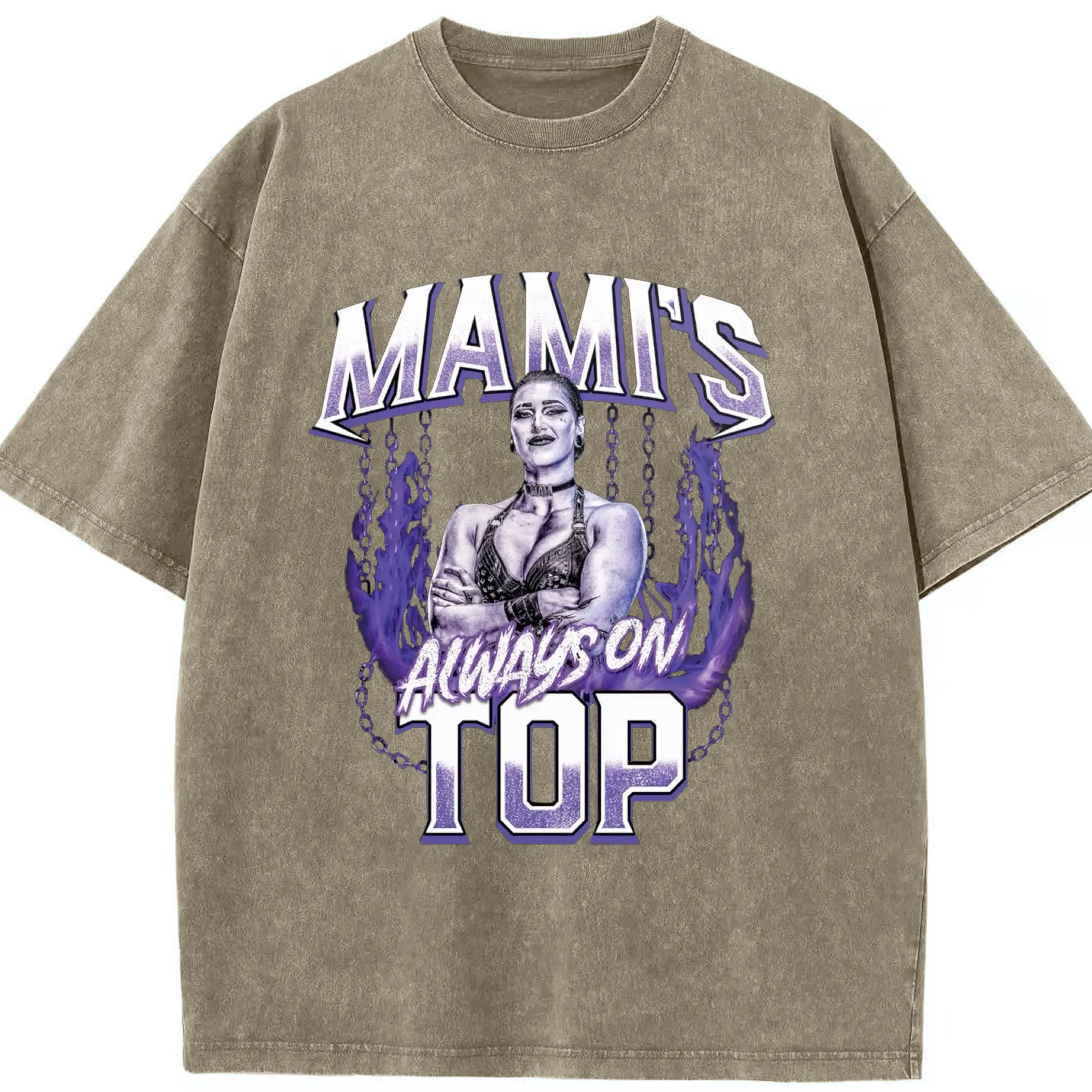 “WWE Mami's Always On Top Hardcore Style” DIY Shirt - Washed Vintage Look 230g Cotton Oversized T-Shirt With Front Heat Transfer Print – Soft, Lightweight, Stylish Fit – Comfortable Casual Wear For Sports & Everyday Use