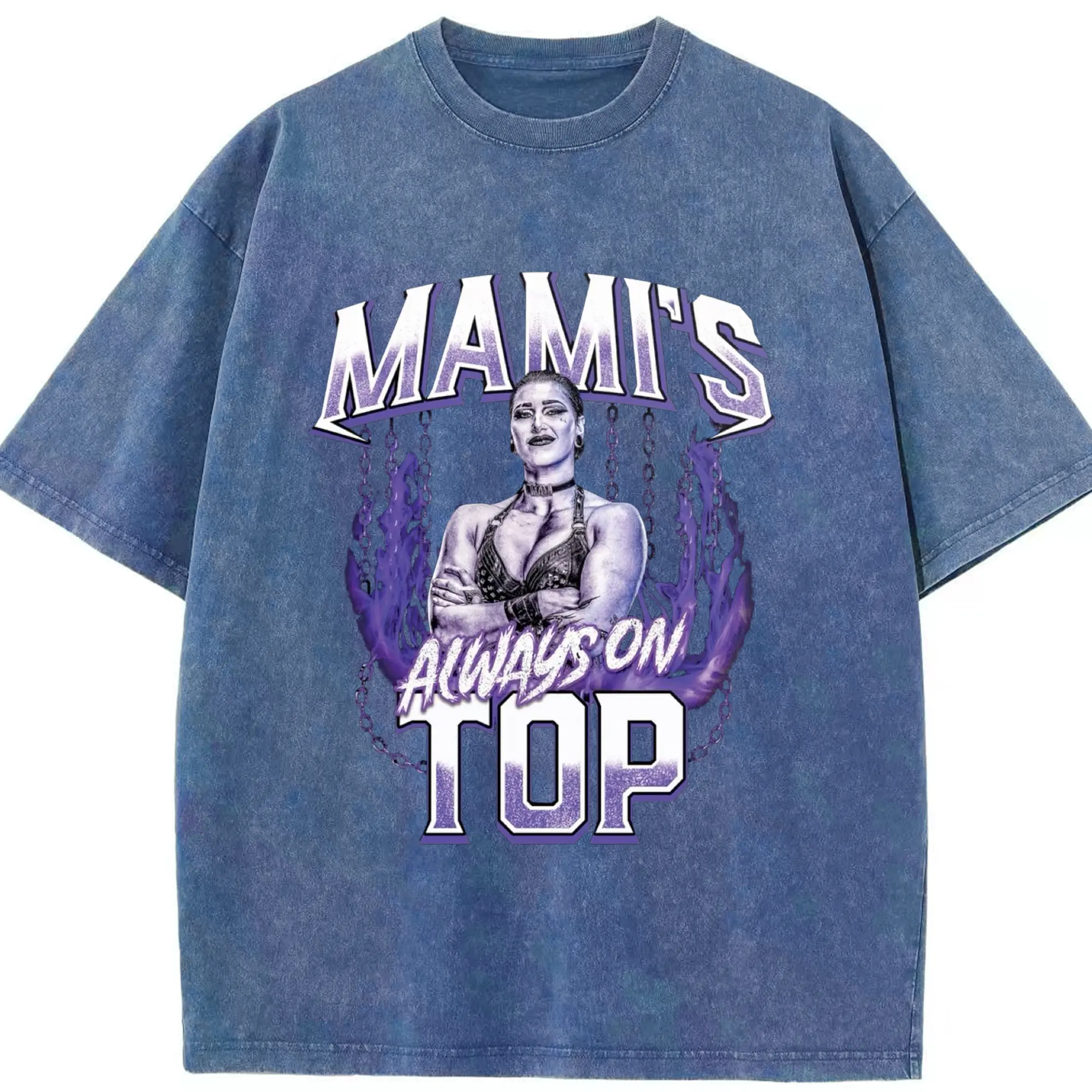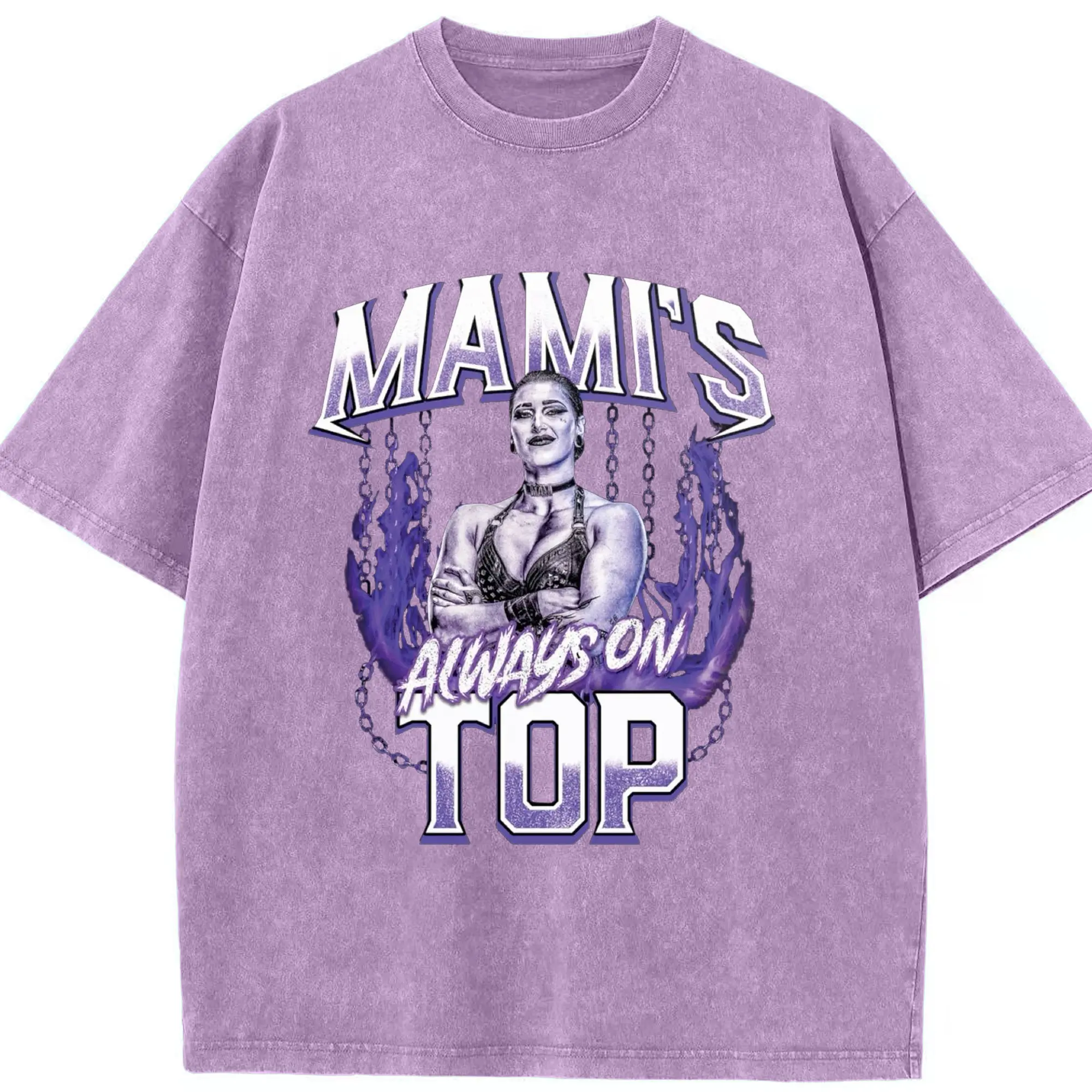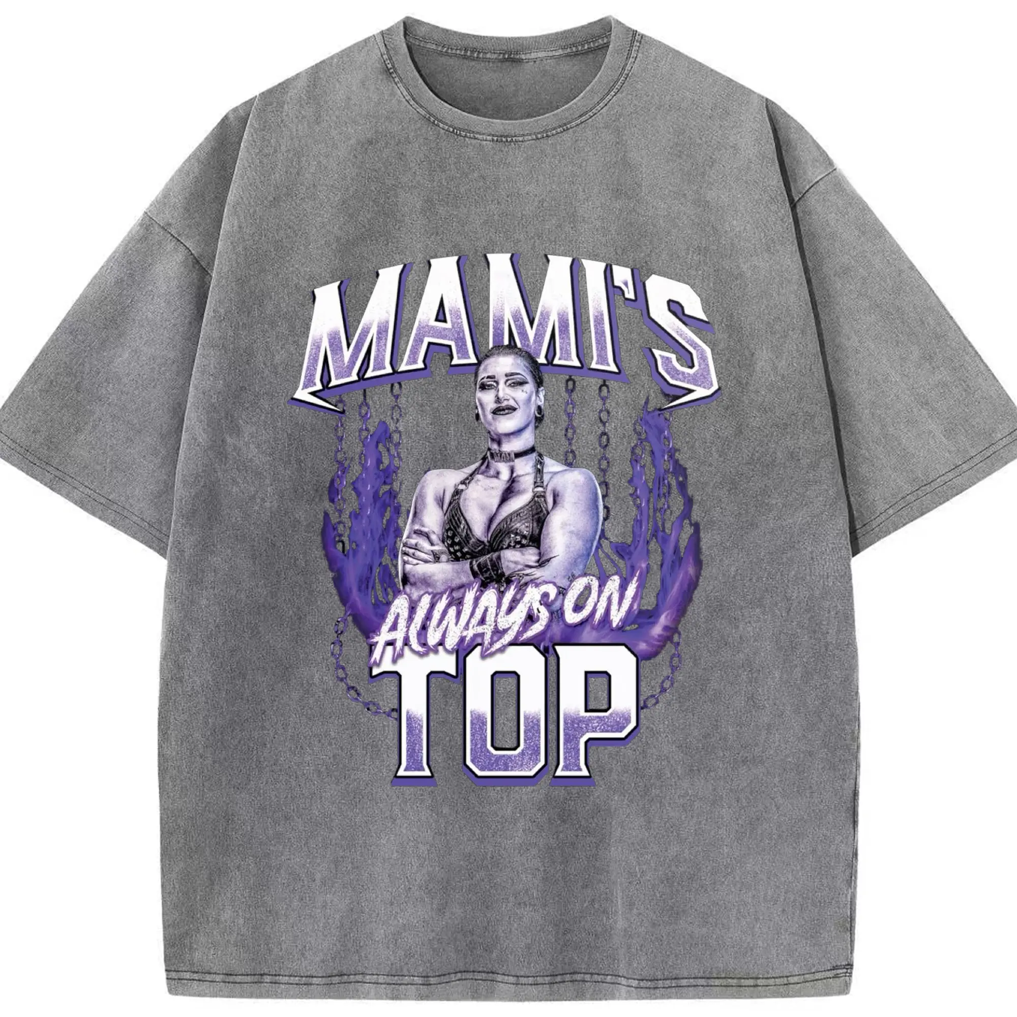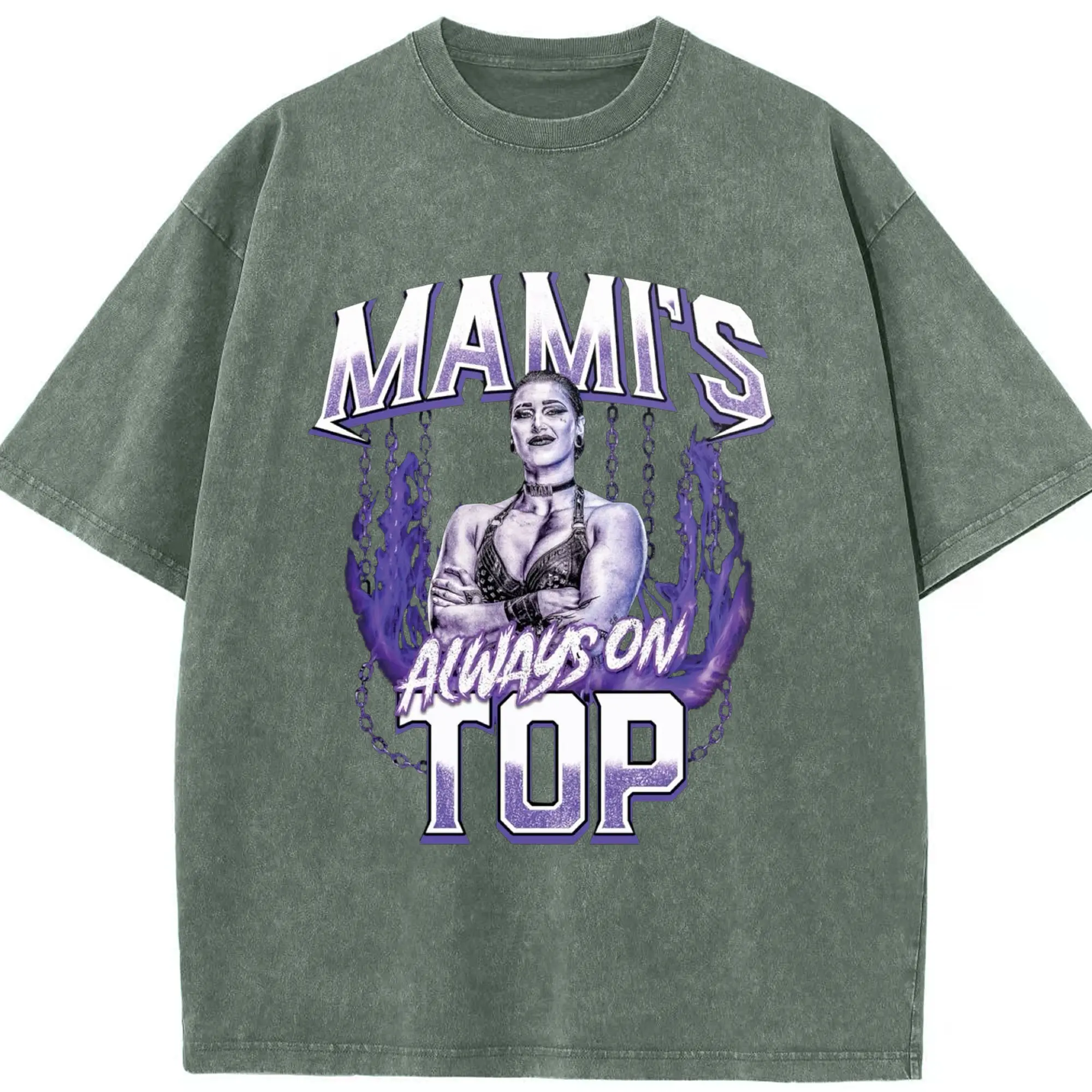 “WWE Mami's Always On Top Hardcore Style” DIY Shirt - Washed Vintage Look 230g Cotton Oversized T-Shirt With Front Heat Transfer Print – Soft, Lightweight, Stylish Fit – Comfortable Casual Wear For Sports & Everyday Use