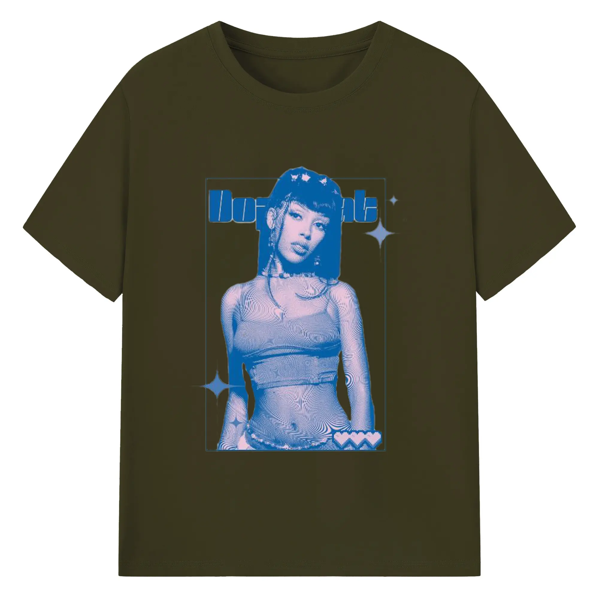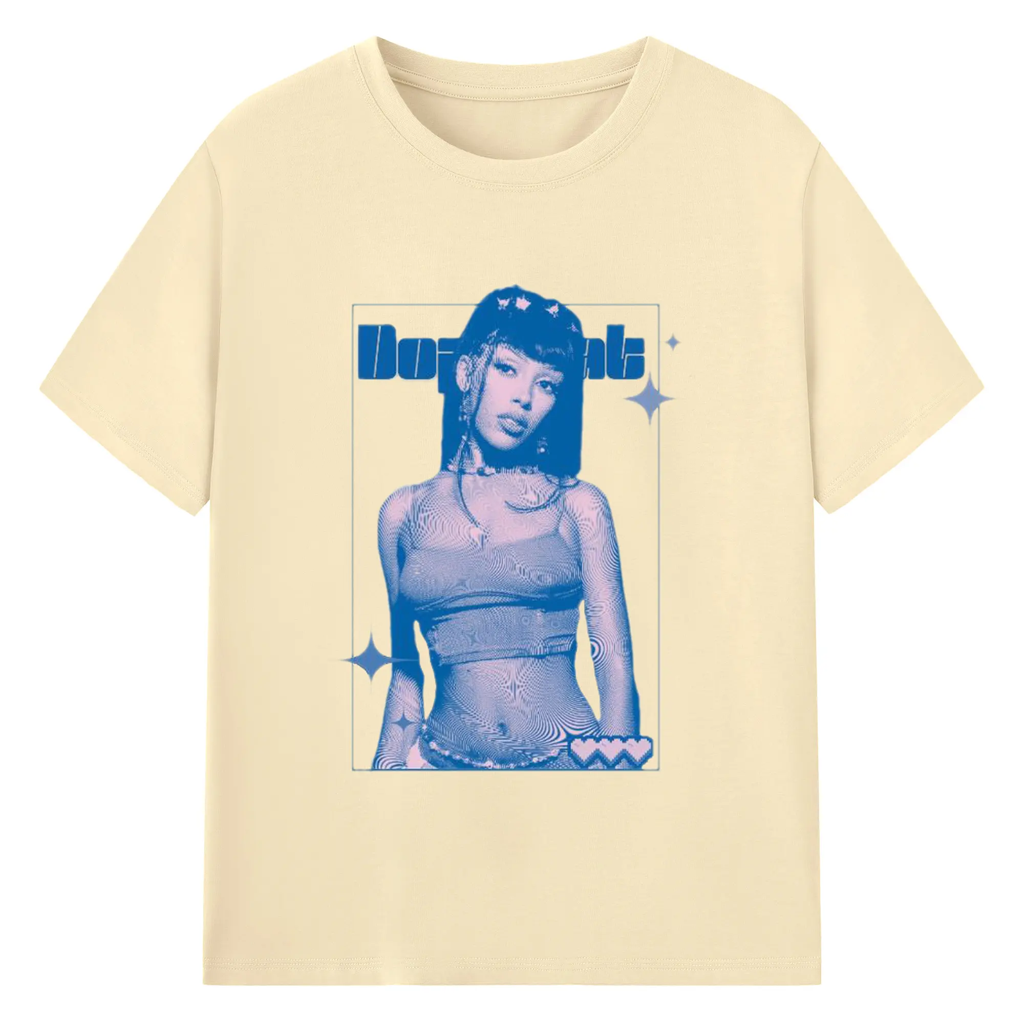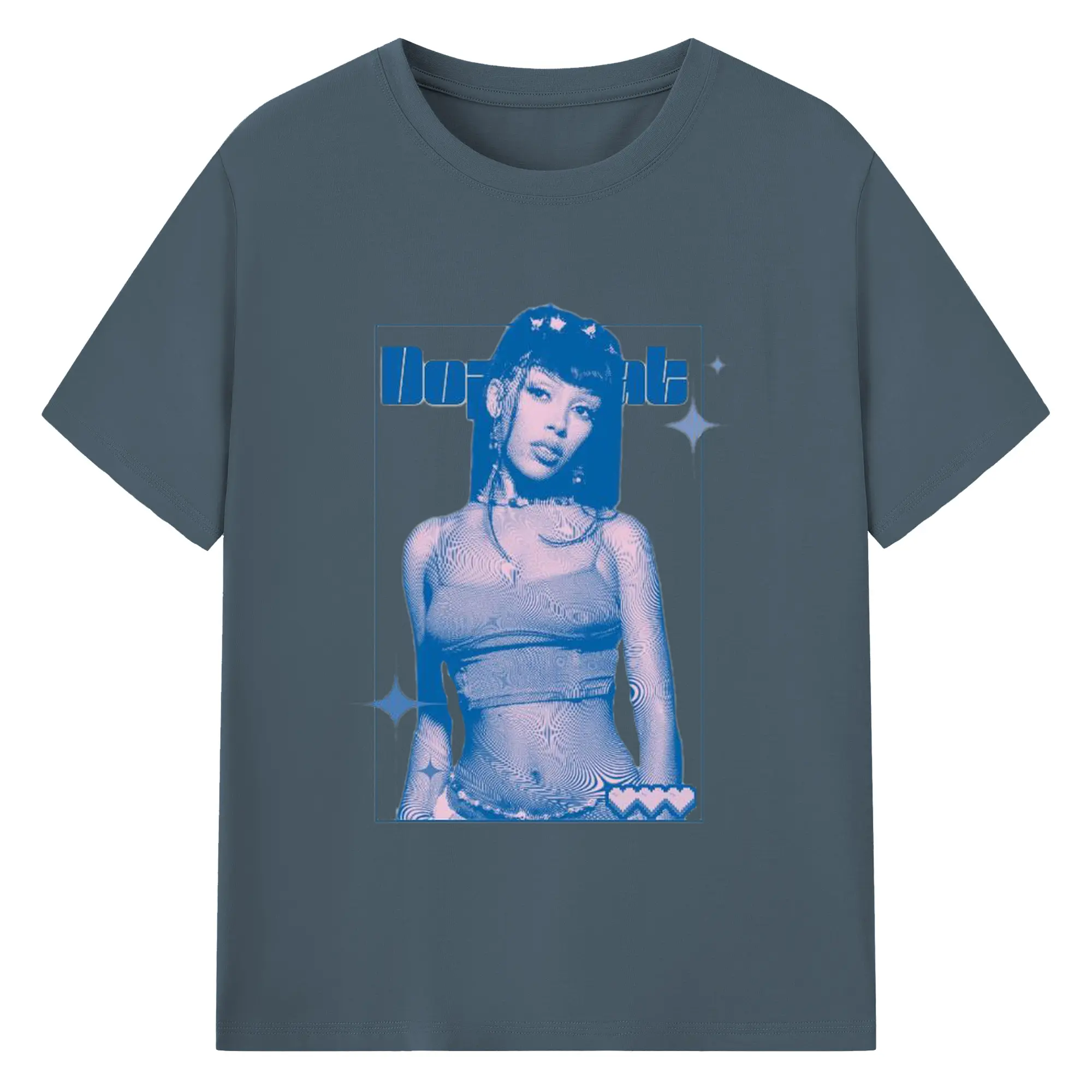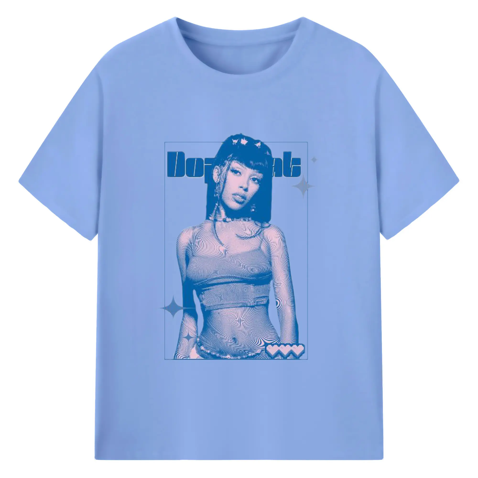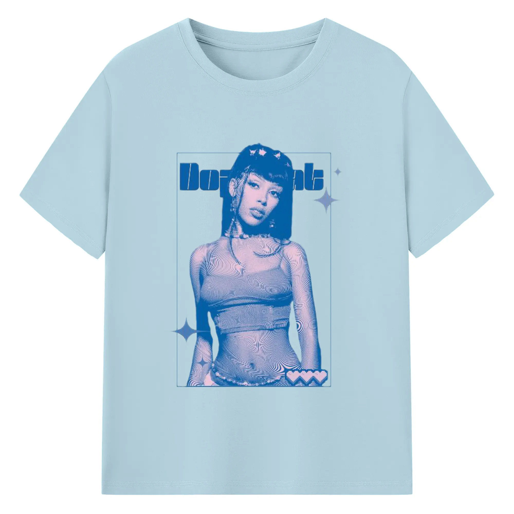 Y2K Artistic Doja Cat Inspired DIY - 180g Cotton T-Shirt With Front Heat Transfer Print – Soft, Lightweight, Fitted Design – Comfortable Casual Wear For Sports & Everyday Use